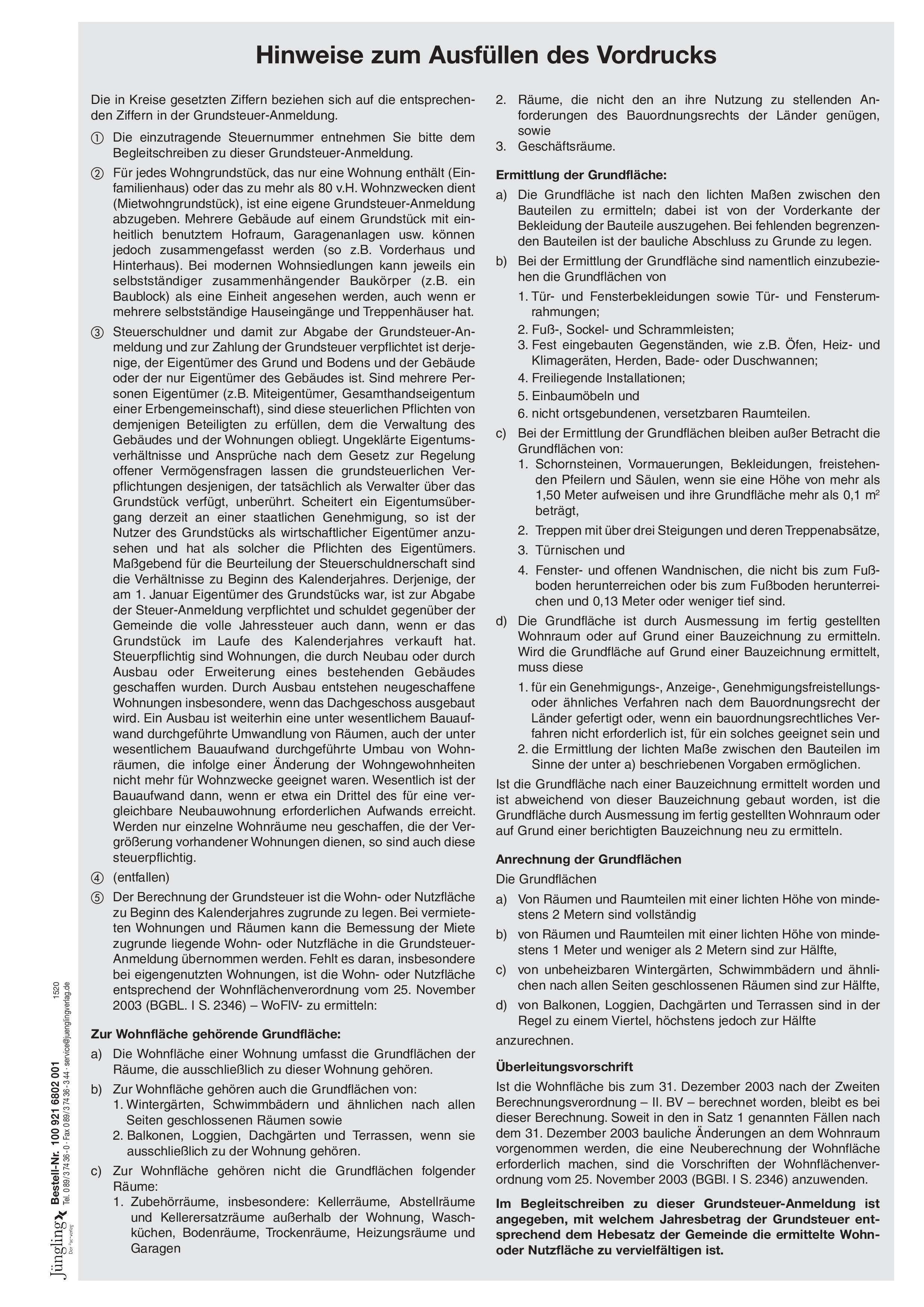 Produktinformationen "Erläuterungen zur Grundsteueranmeldung"