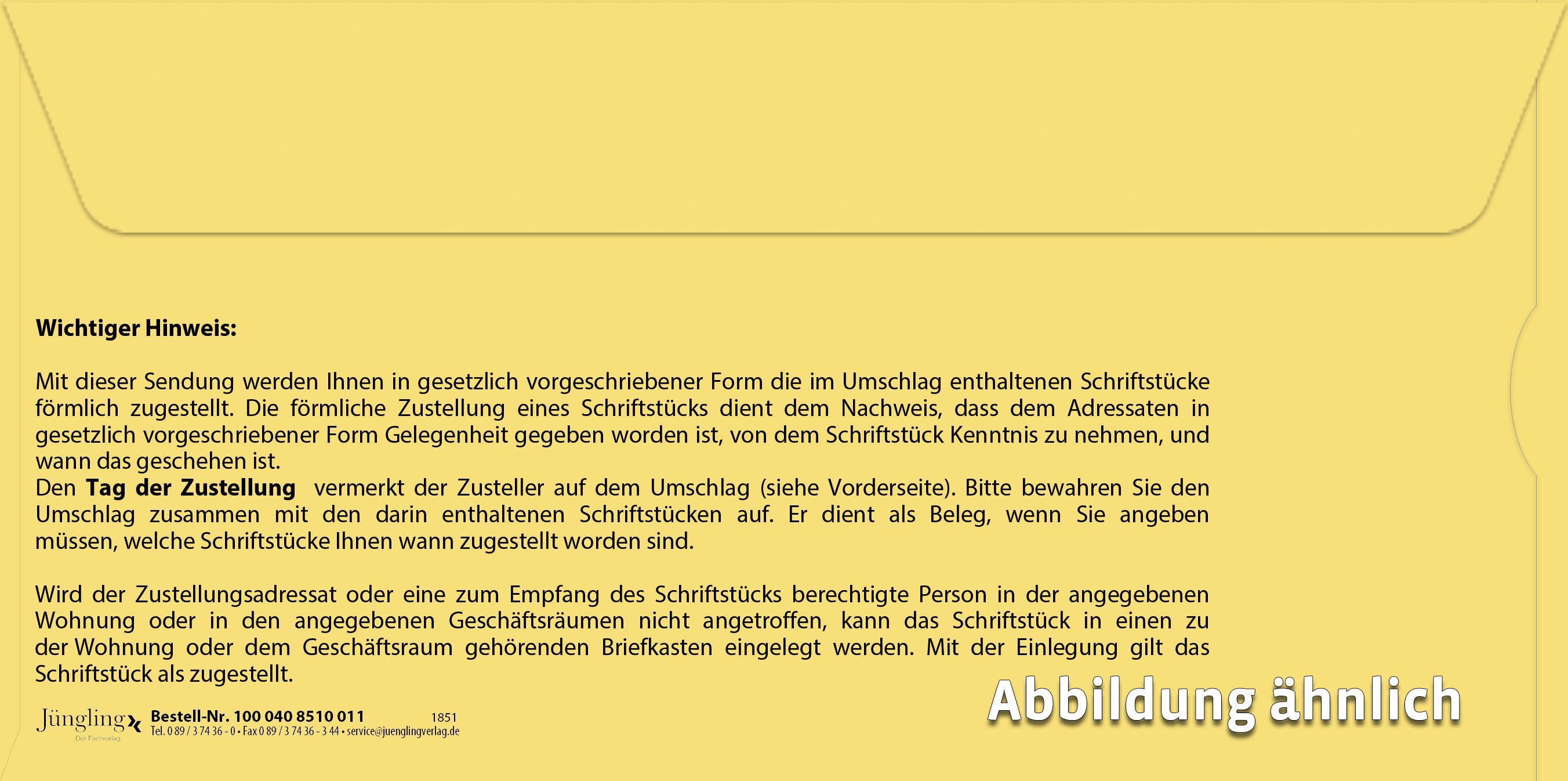 Produktinformationen "Förmliche Zustellung: Gelber innerer Umschlag mit Fenster"