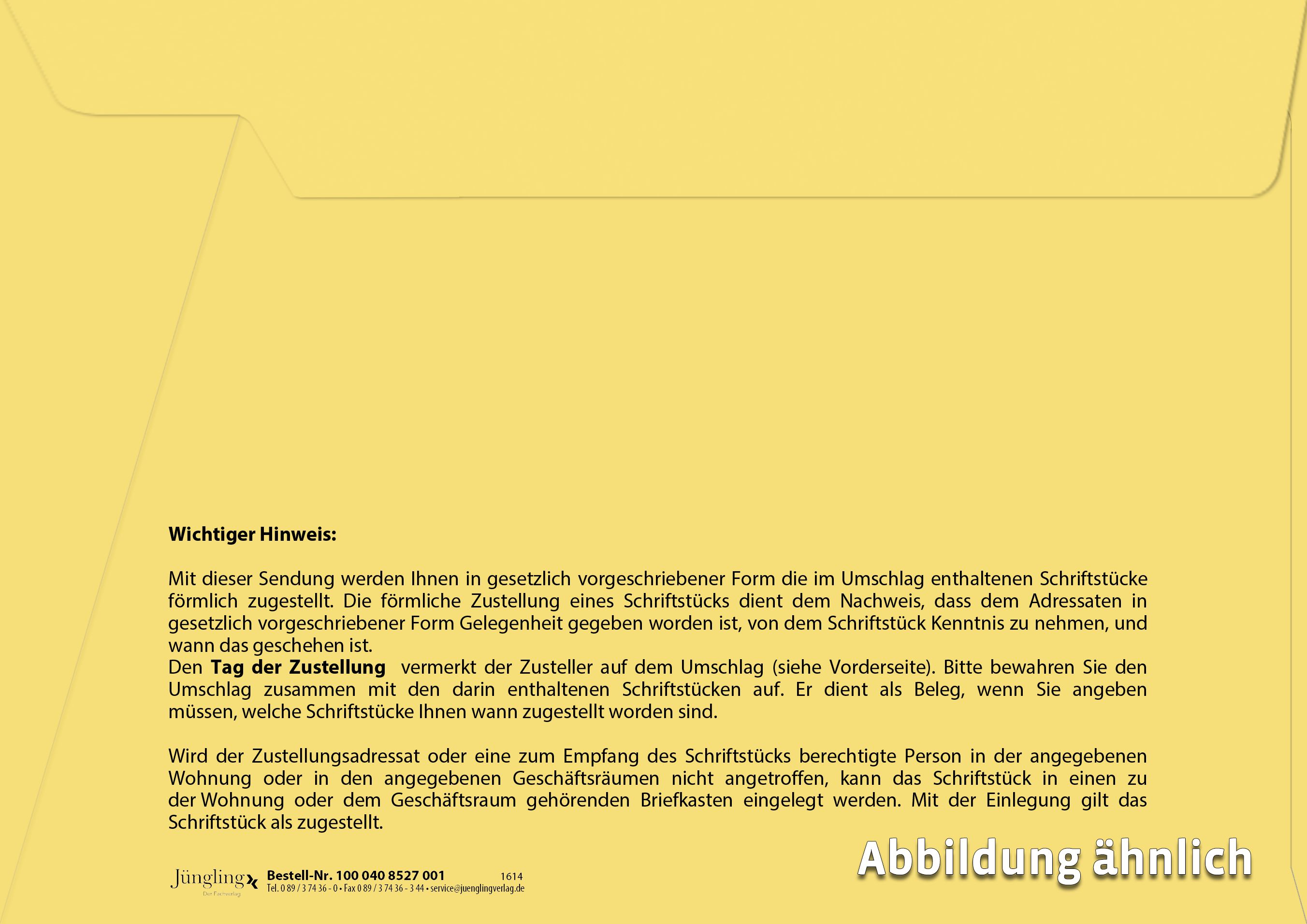 Förmliche Zustellung: Innerer Umschlag DIN C5 mit Fenster, gelb