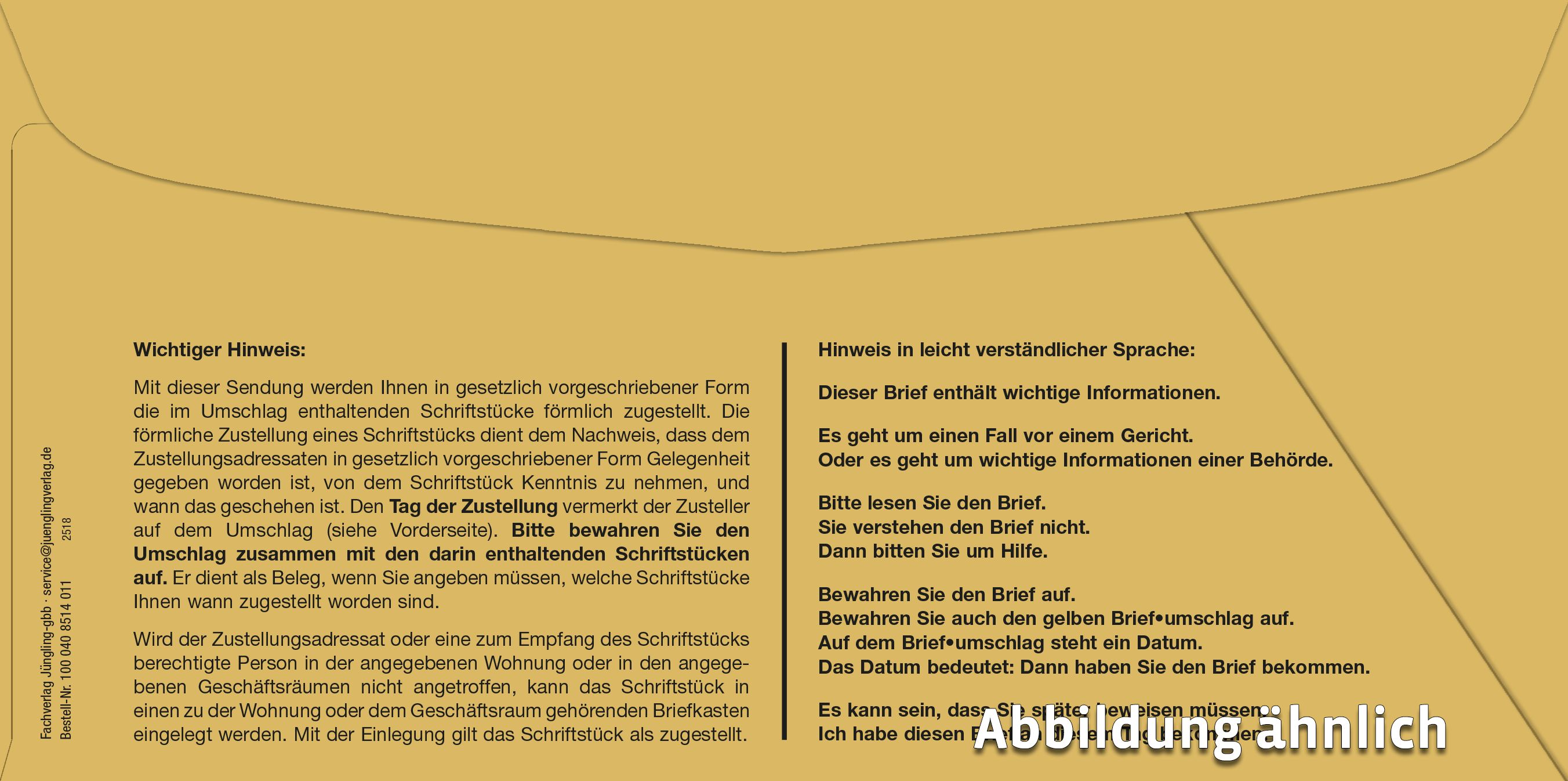Produktinformationen "Förmliche Zustellung: Innerer Umschlag m. großem F. nk m. Einsteckschl. maschinell kuvertierbar 114x229 mm, "
