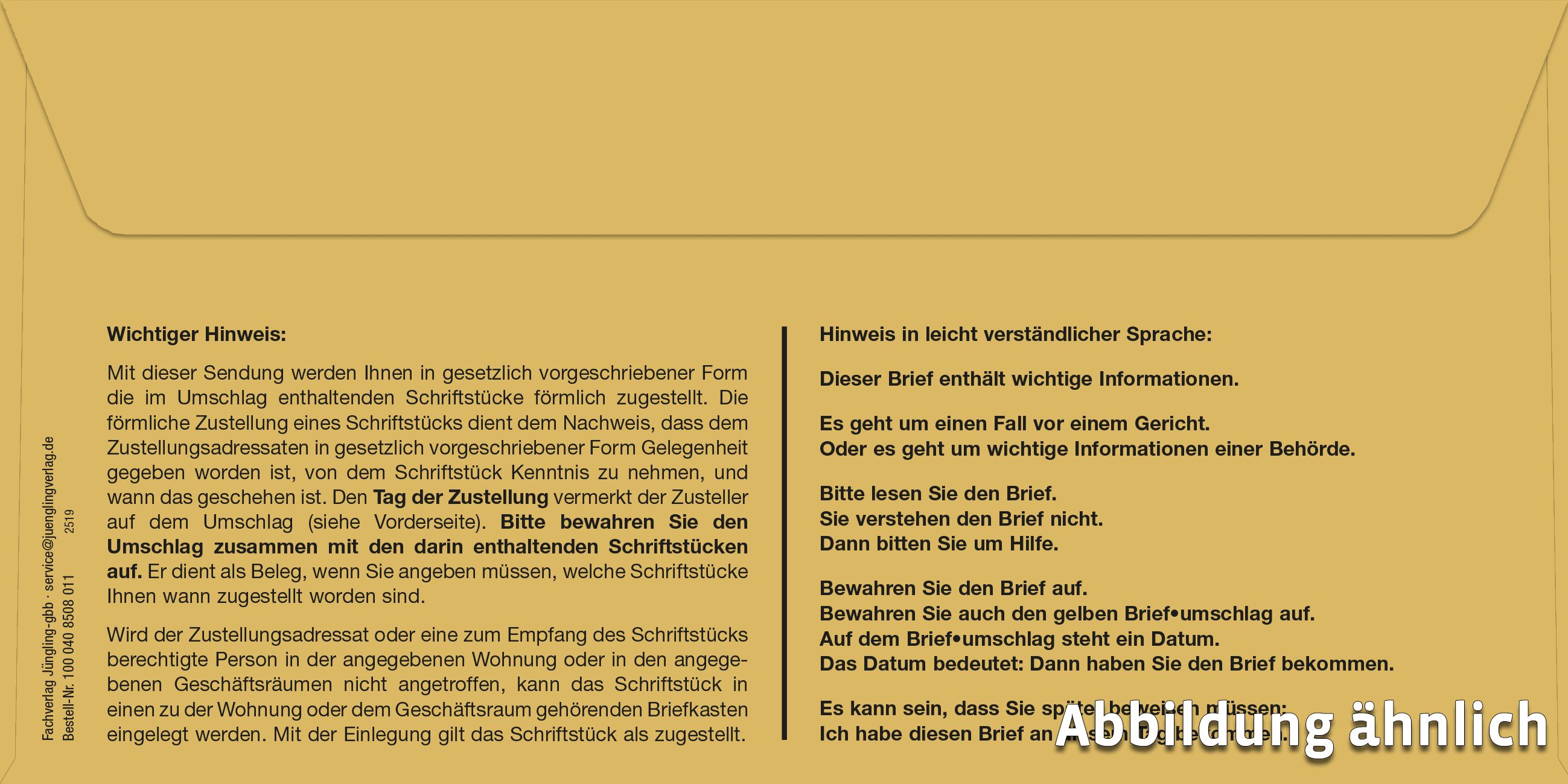 Förmliche Zustellung: Innerer Umschlag ohne Fenster, nassklebend, mit Kohlepapier