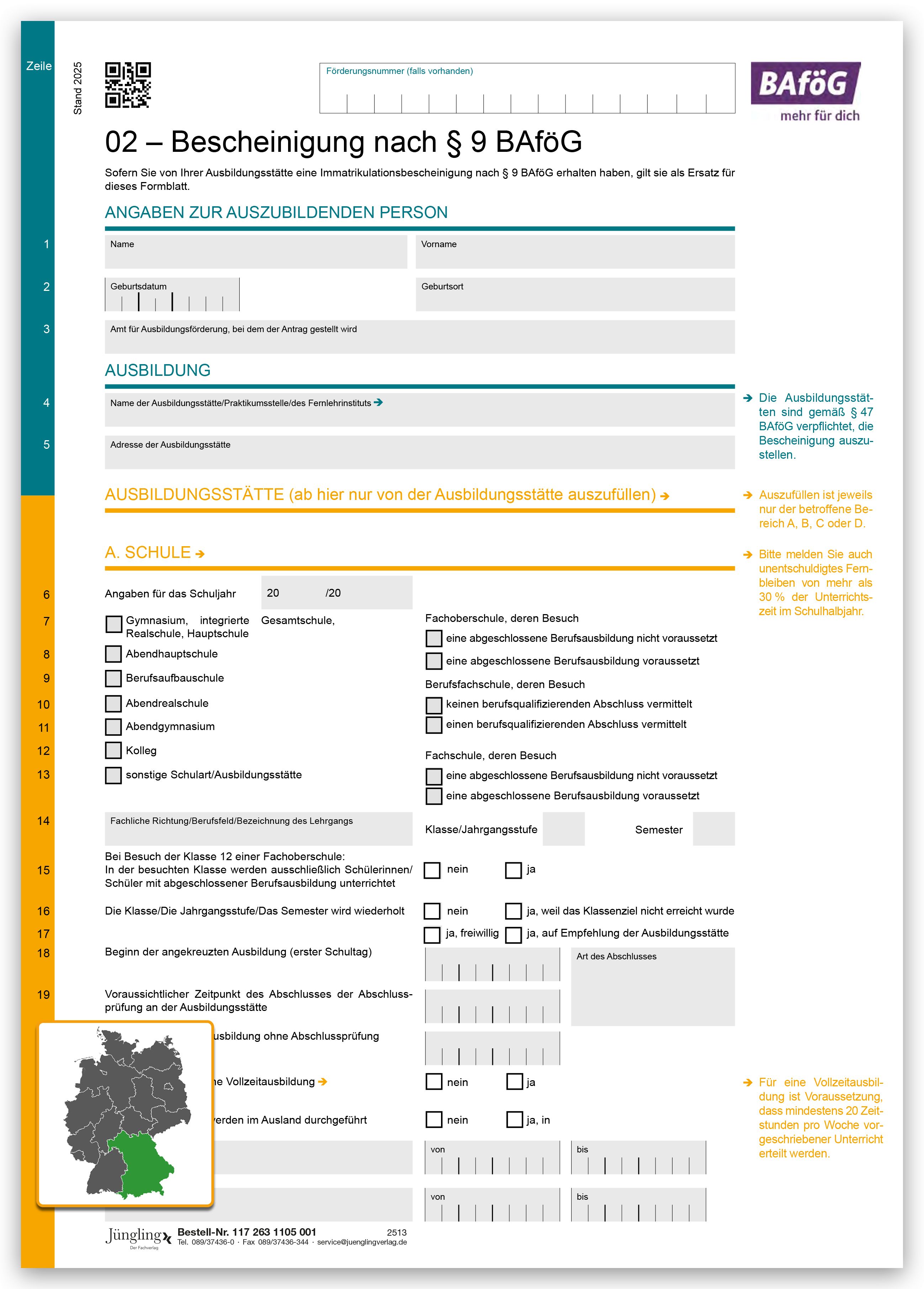 Produktinformationen "Formblatt 02 - Bescheinigung nach § 9 BAföG"