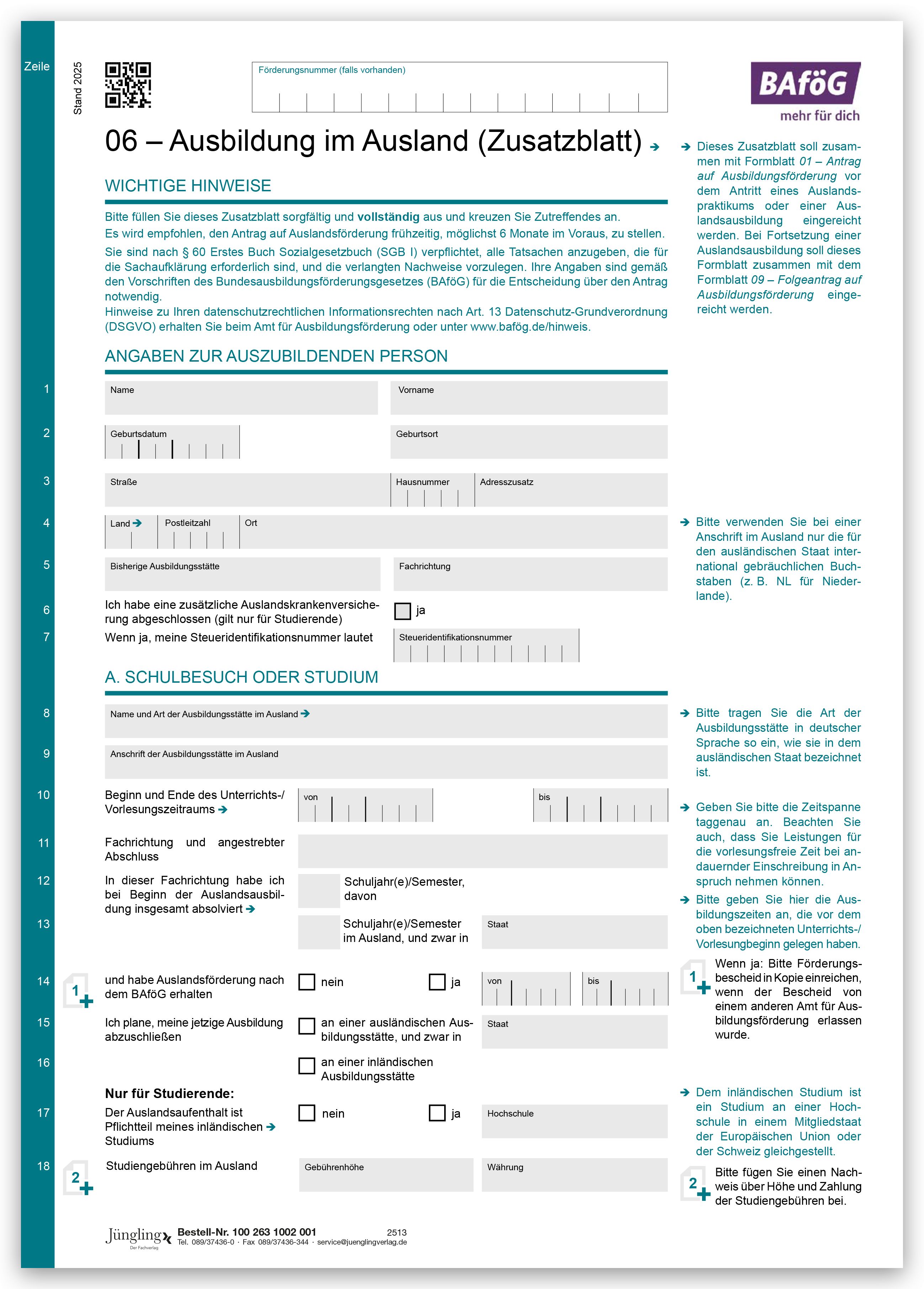 Produktinformationen "Formblatt 06 - Ausbildung im Ausland (Zusatzblatt)"