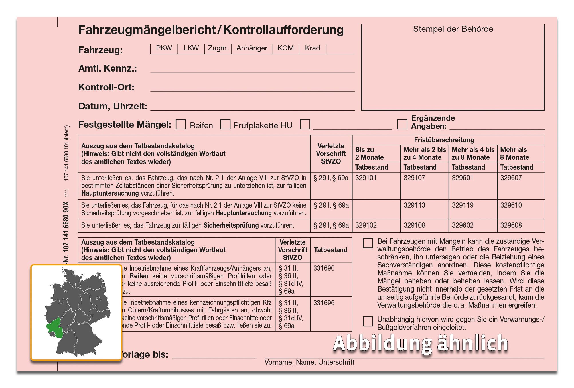 Produktinformationen "Fz.-Mängelbericht / Kontrollaufforderung, Block A6, 2-fach"