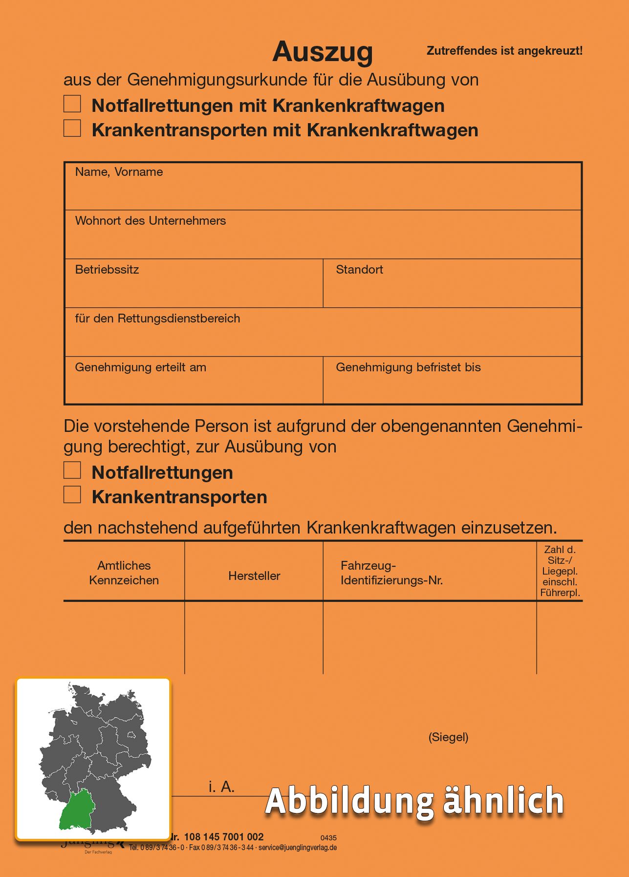Produktinformationen "Genehmigungsurkunde für Notfallrettungen und Krankentransporte"
