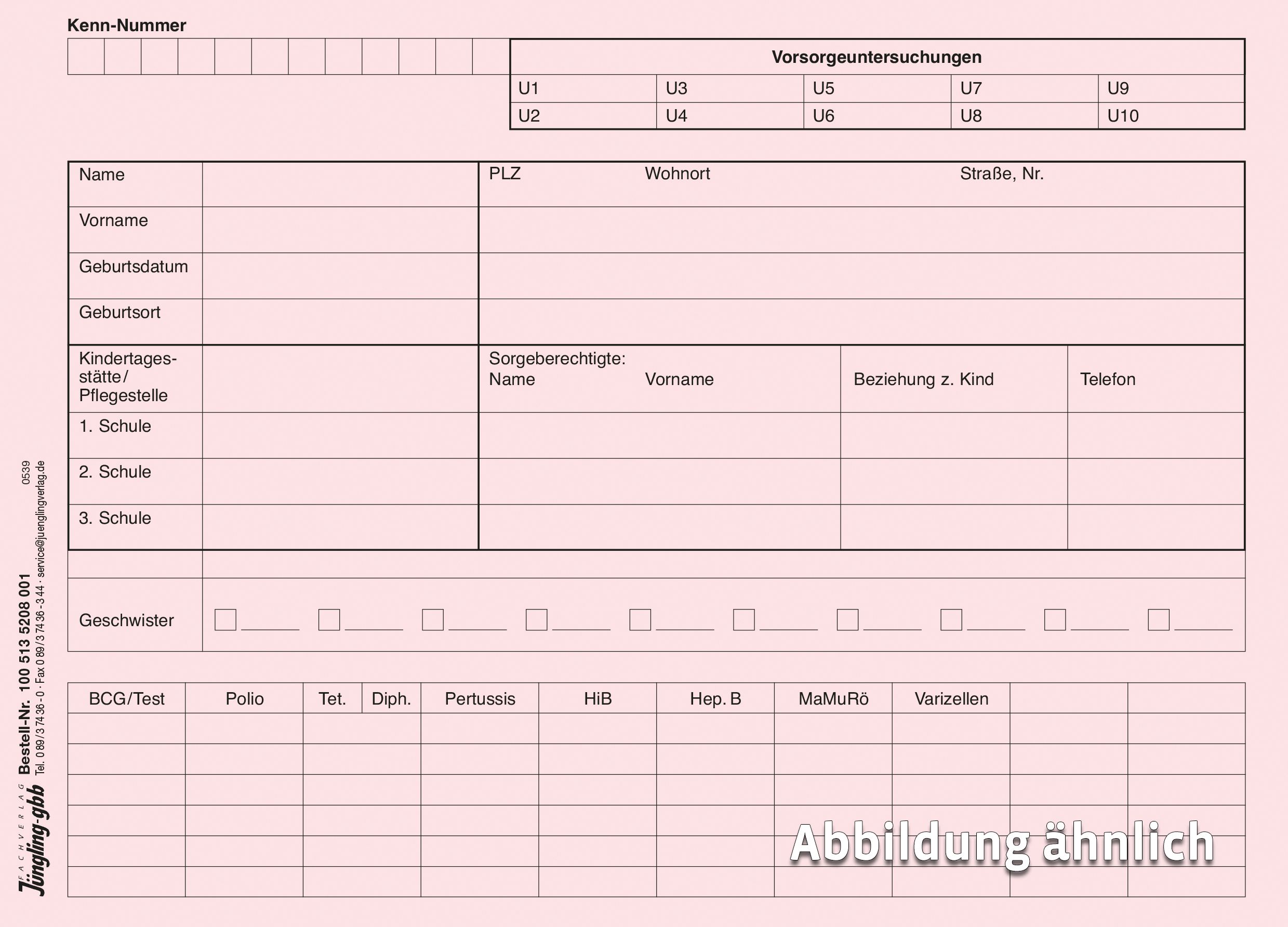 Gesundheitskarte Mädchen, Rosa Karton