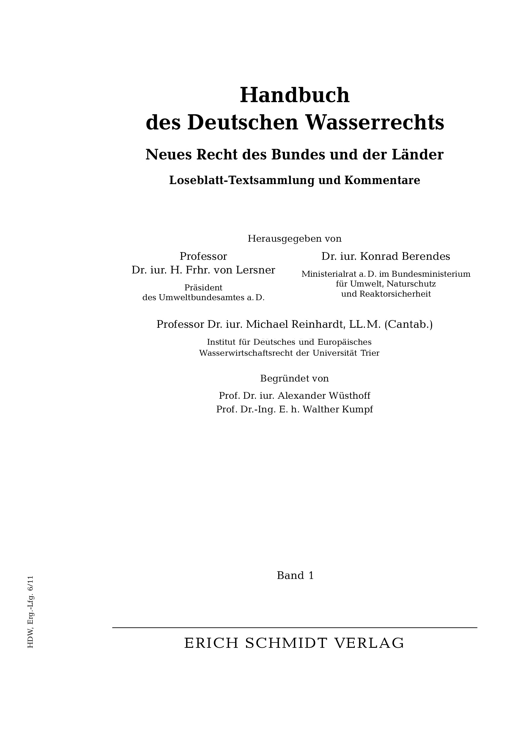Handbuch des Deutschen Wasserrechts - mit Fortsetzungsbezug