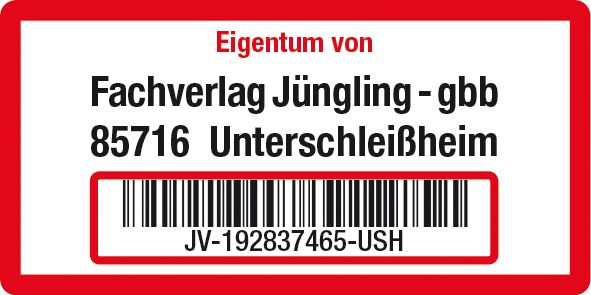 Inventaretikett, mit Barcode und Klarschrift, Farbe: rot