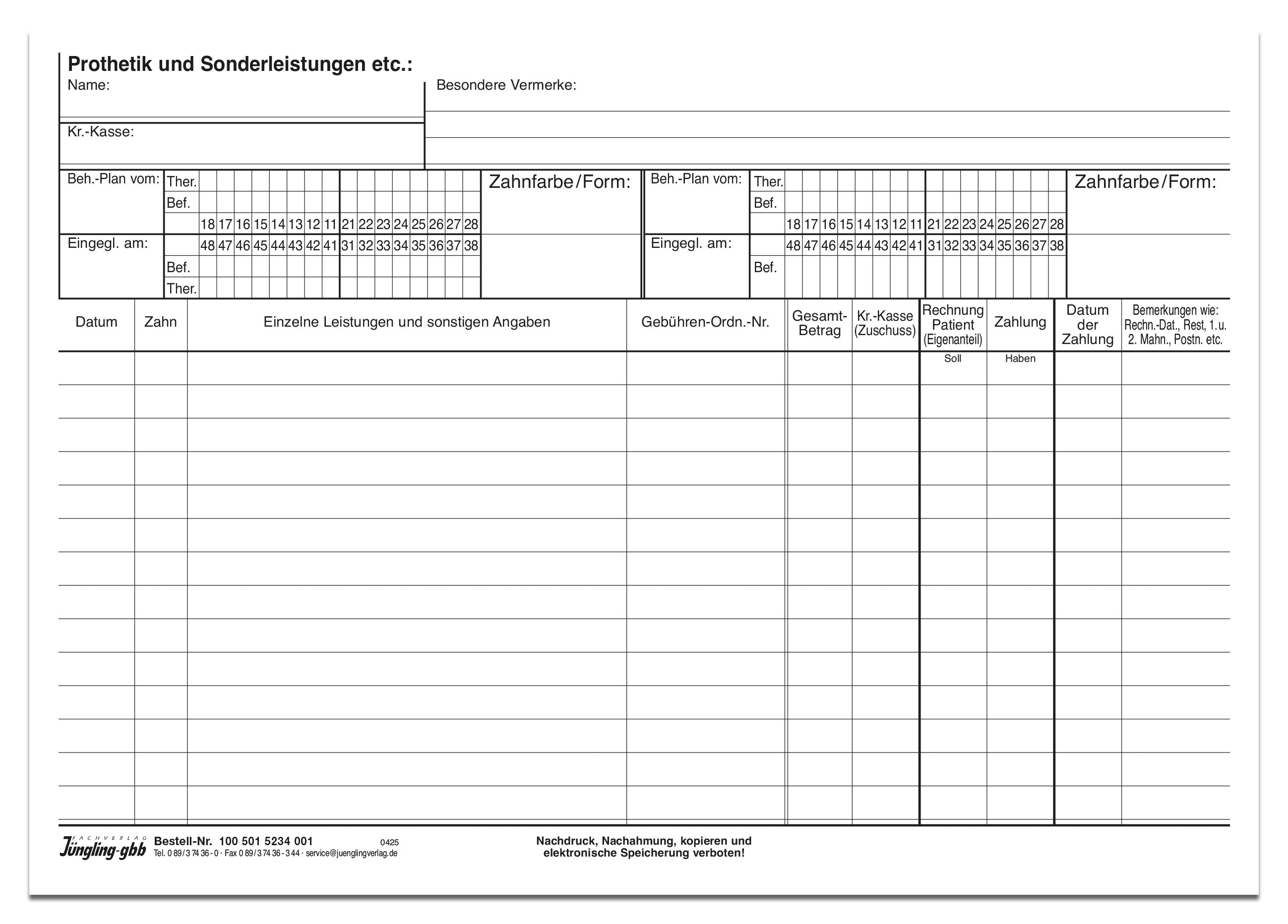 Kartei für Prothetikleistungen für Zahnärzte, weiß