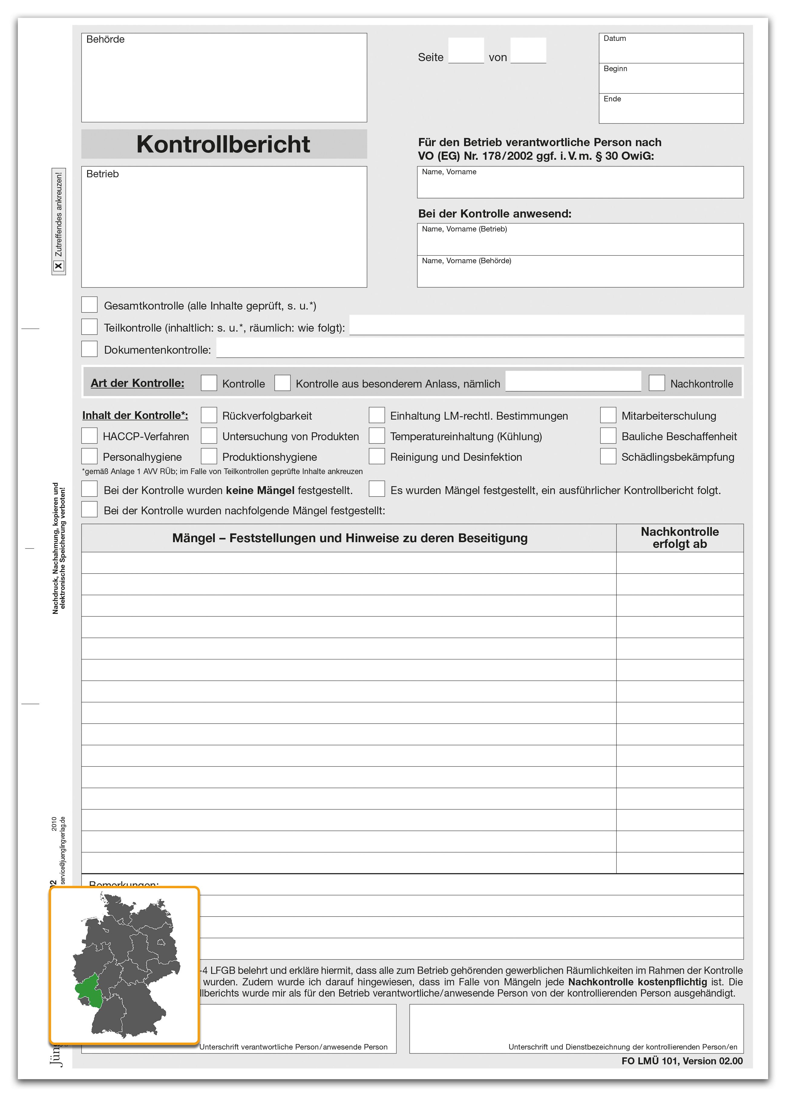Produktinformationen "Kontrollbericht FO LMÜ 101 Version 02.00, A4 2-fach, SD"