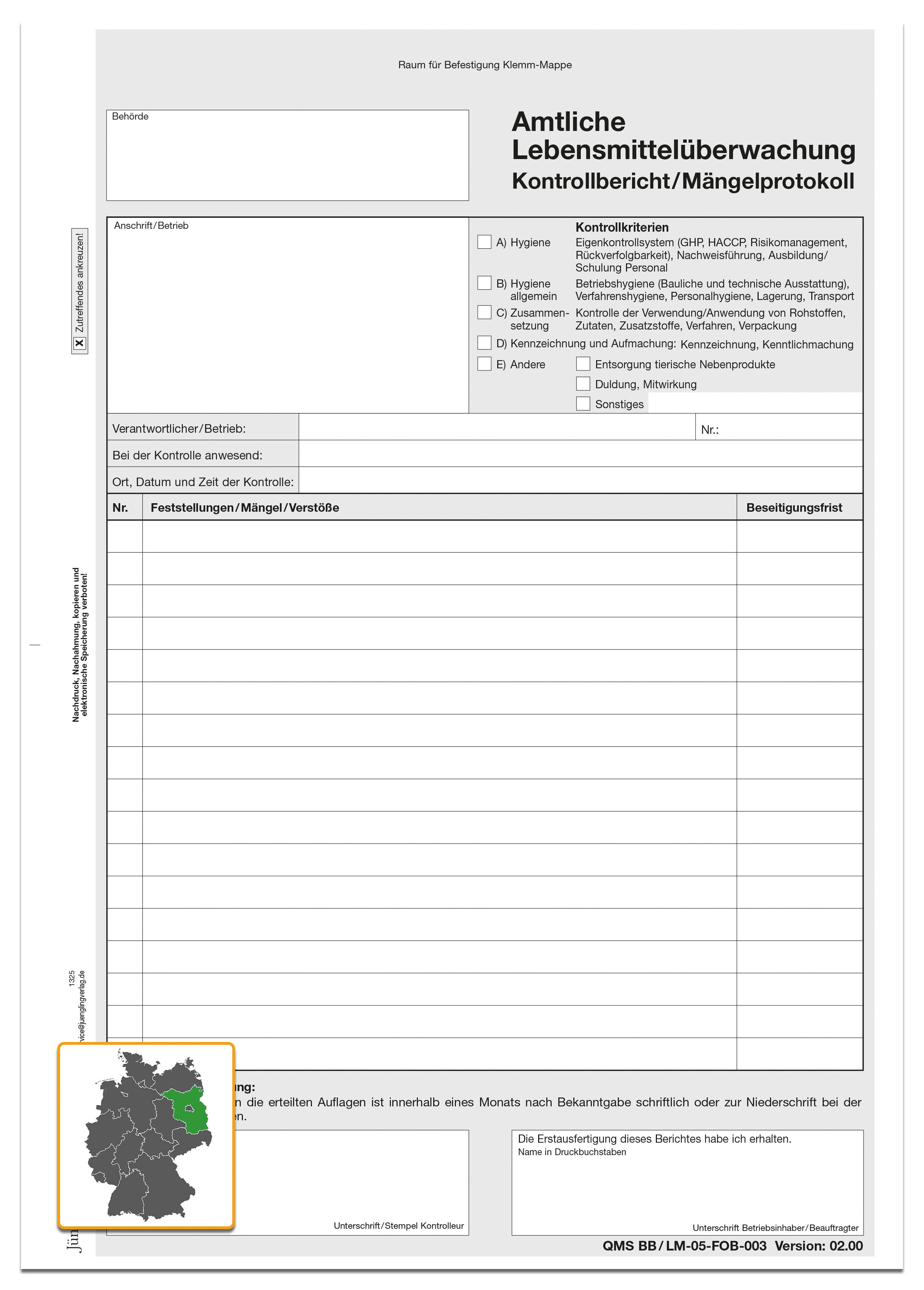Kontrollbericht der Lebensmittelüberwachung, A4, 3-fach