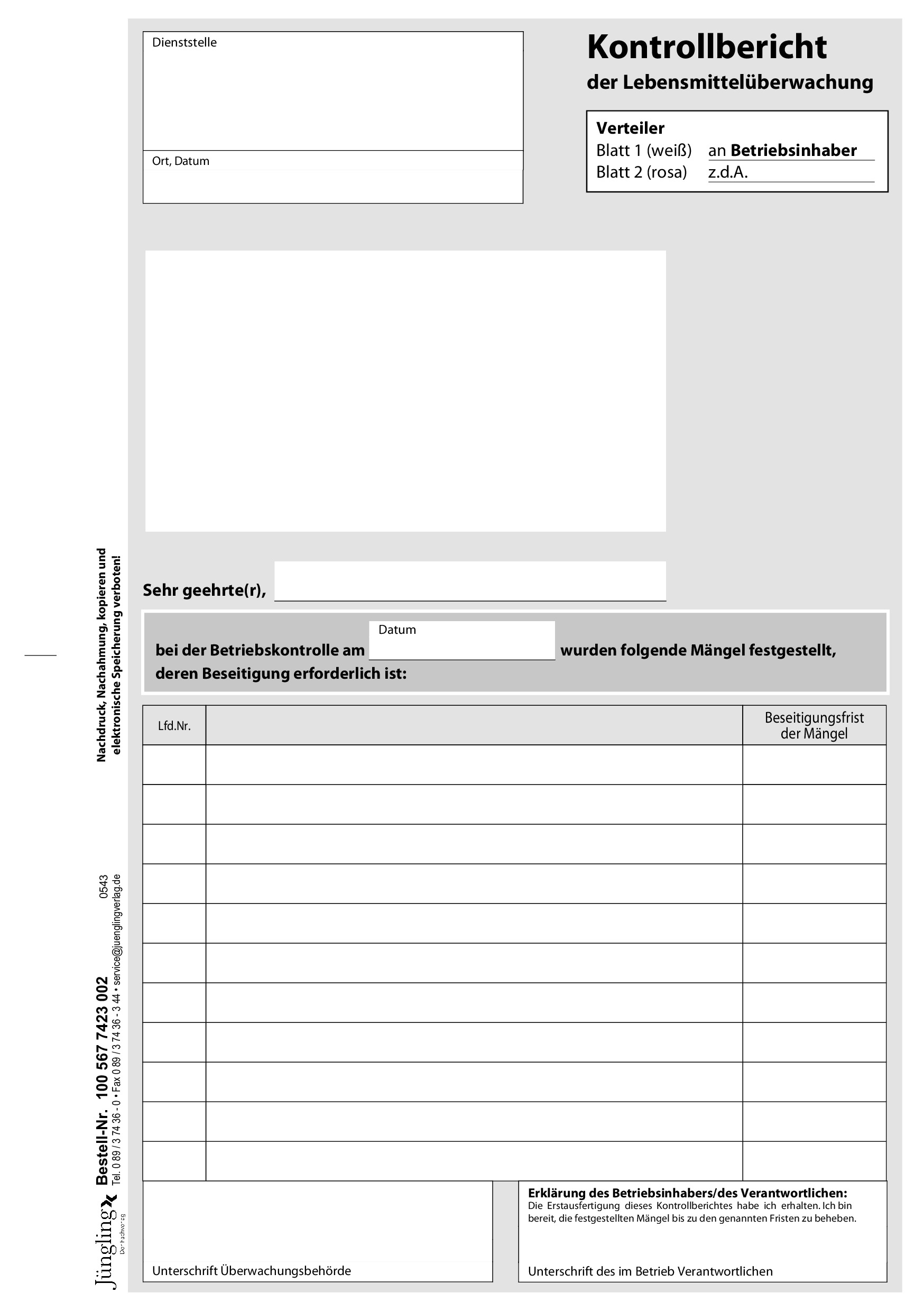 Produktinformationen "Kontrollbericht der Lebensmittelüberwachung, A5, 2-fach SD"