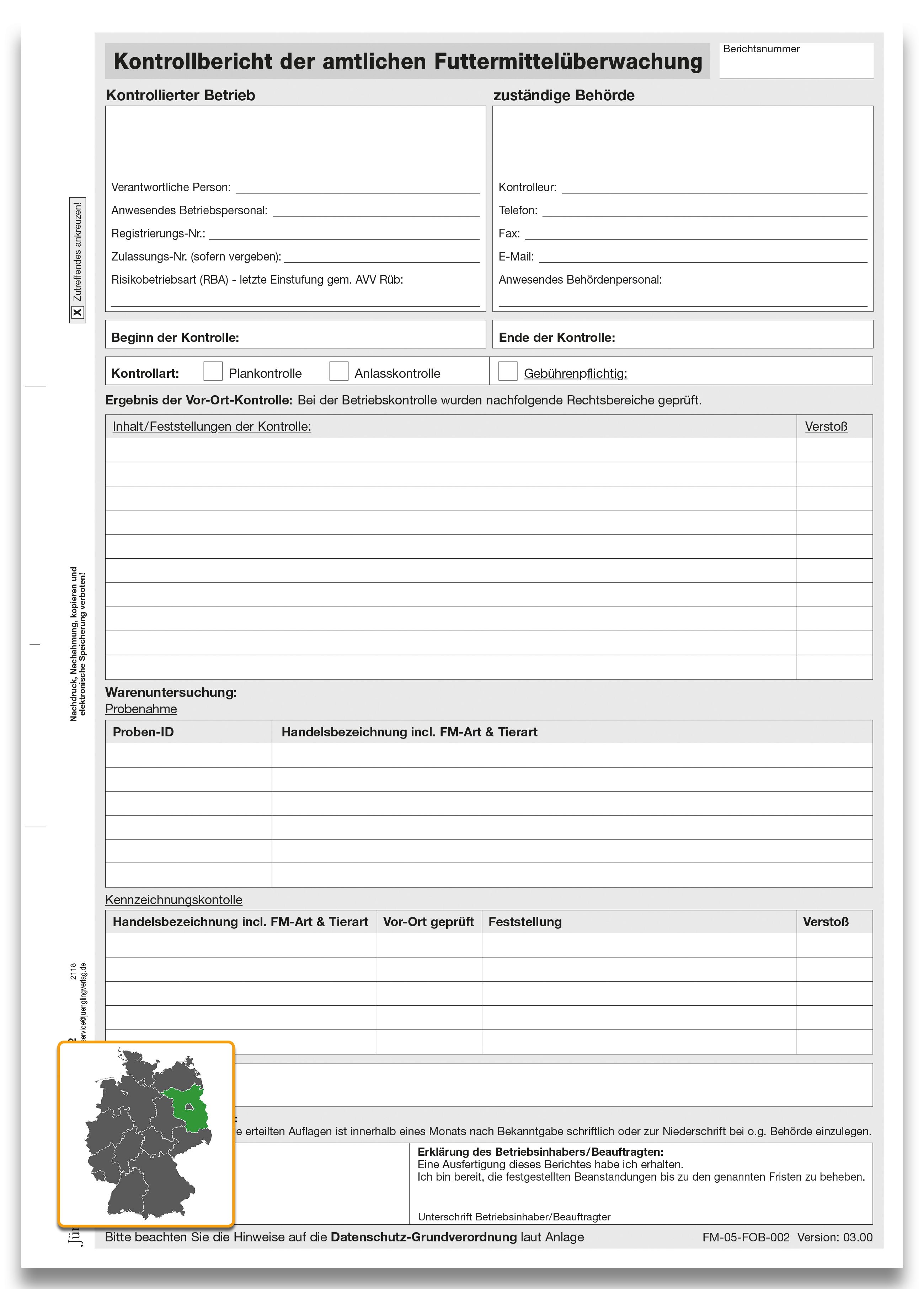 Produktinformationen "Kontrollbericht der amtlichen Futtermittelüberwachung, A4, 2-fach, SD"