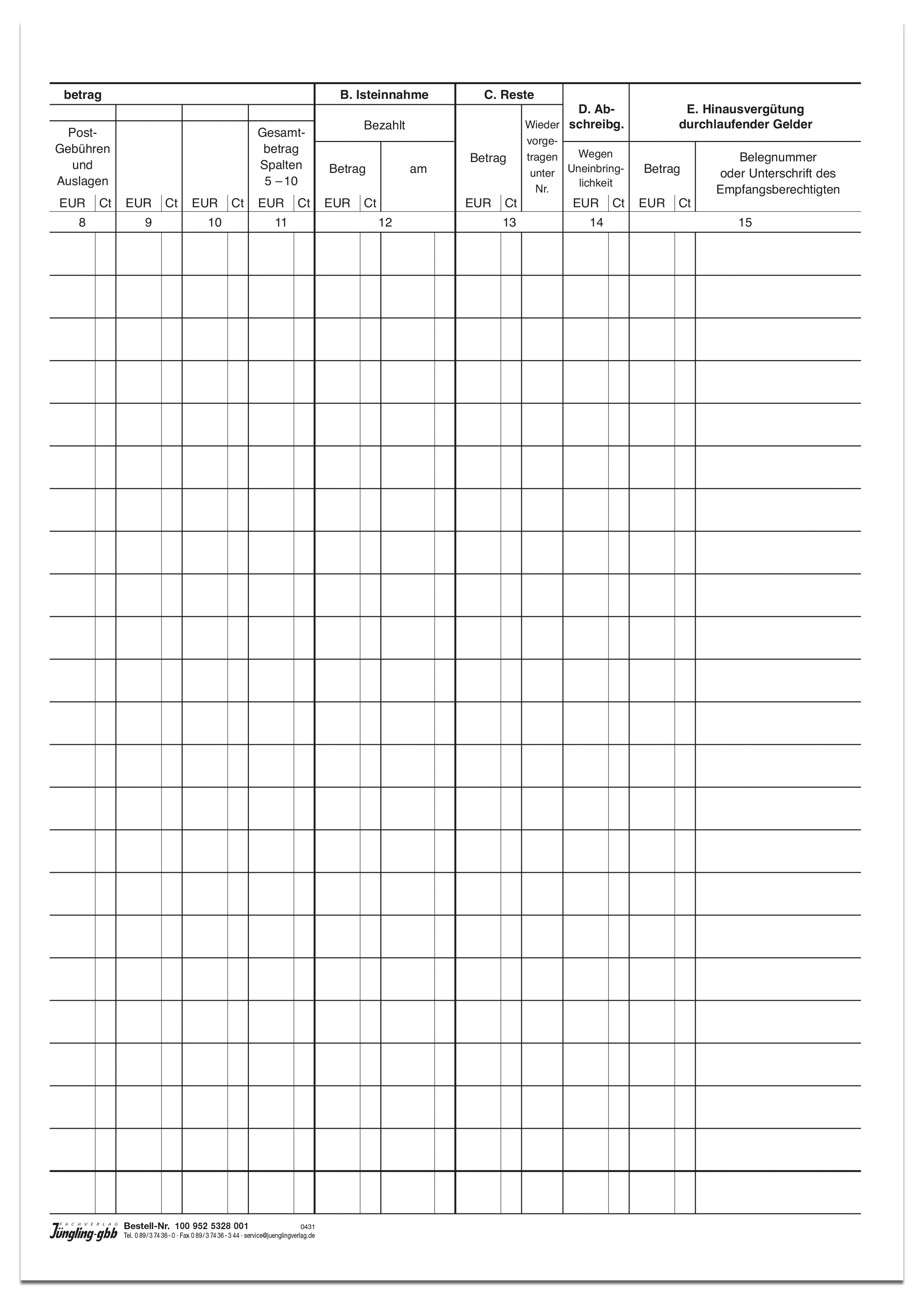 Kosten- und Gebührenverzeichnis -Einlagebogen- DIN A4