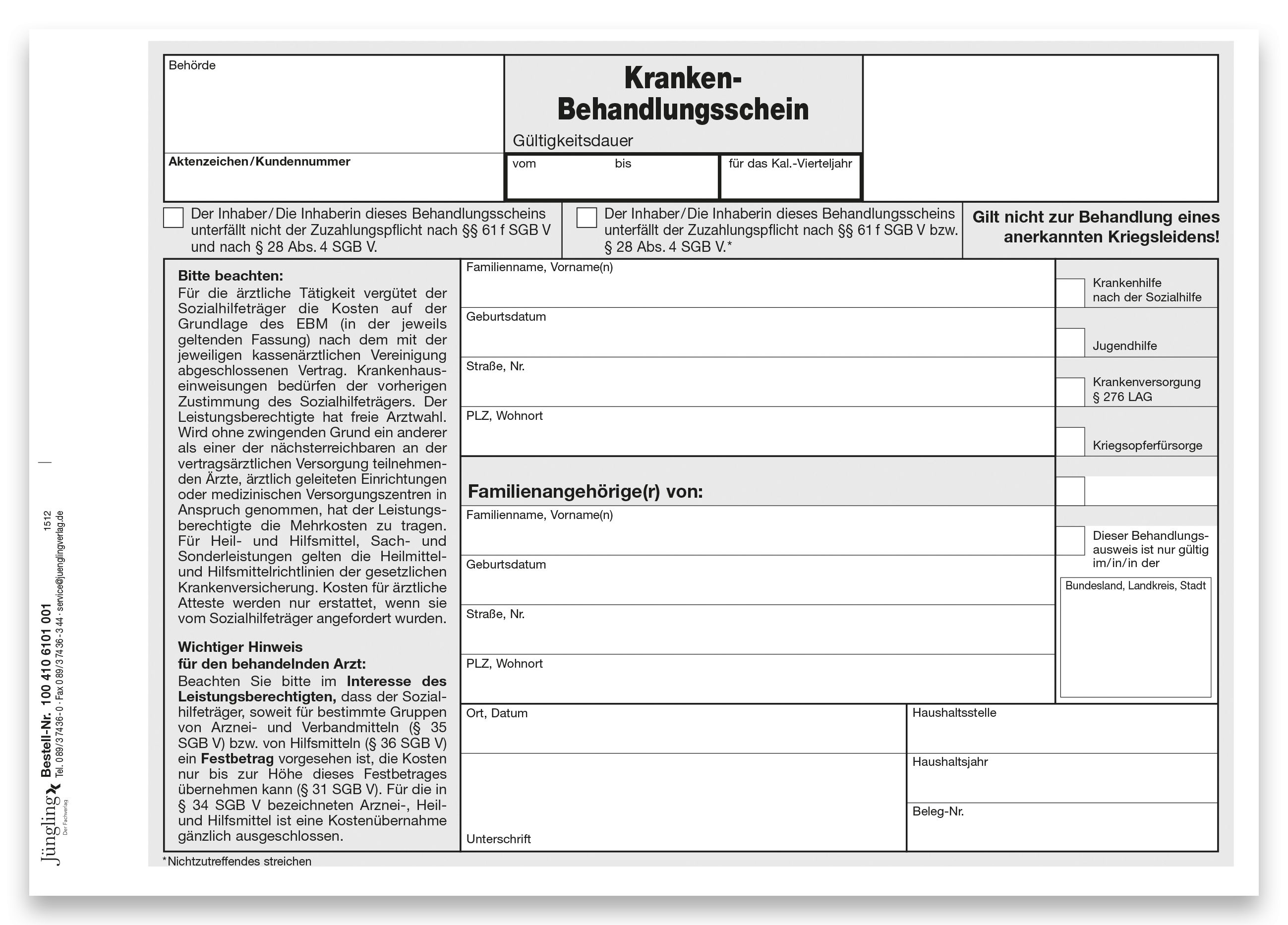 Krankenbehandlungsschein, DIN A5