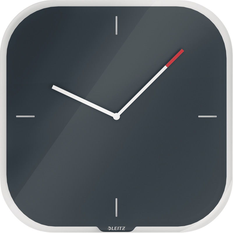 Produktinformationen "LEITZ Cosy Wanduhr aus Glas 300 x 300 mm - dunkelgrau"