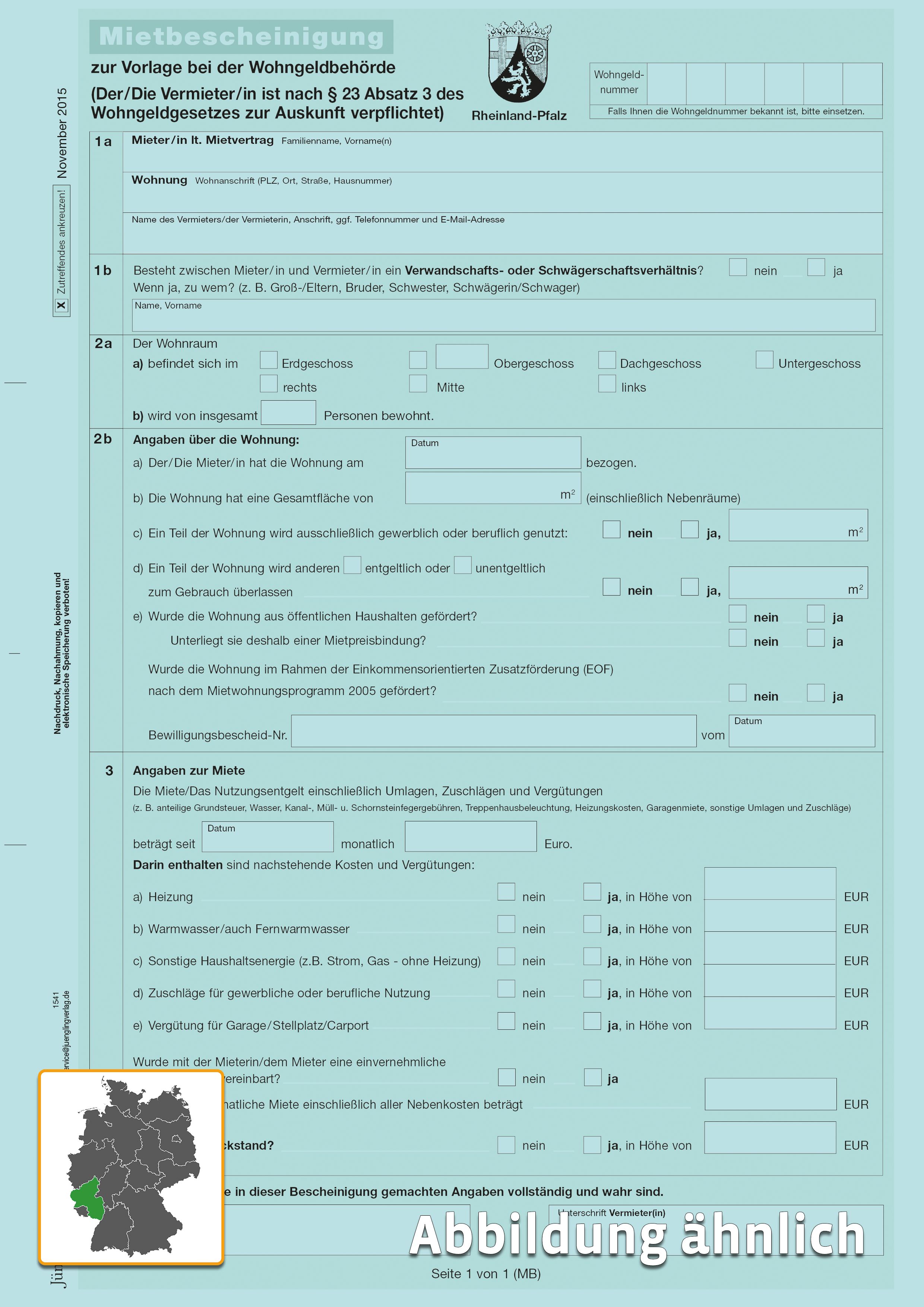 Mietbescheinigung, A4 blau