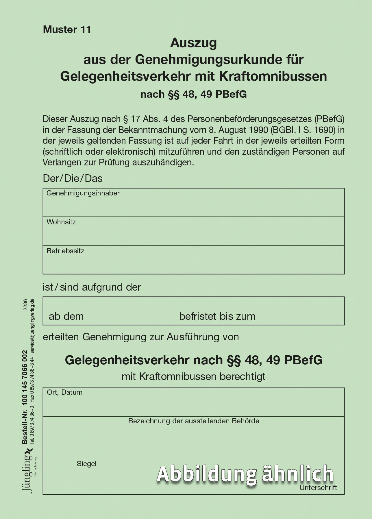 Produktinformationen "Muster 11: Auszug Genehmigungsurkunde Gelegenheitsverkehr mit Kraftomnibussen"