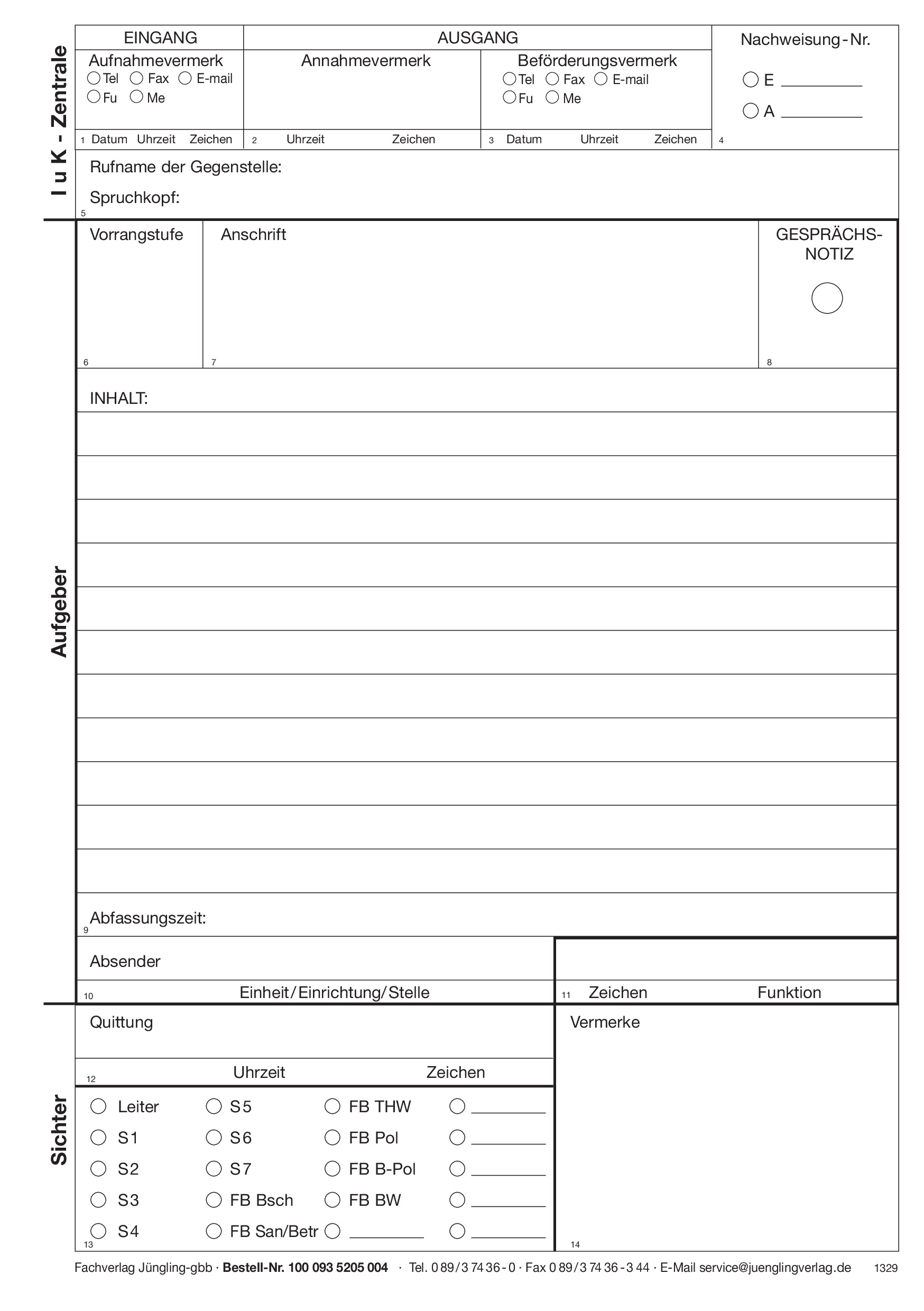 Der Nachrichtenvordruck im DIN A5-Format erleichtert die Kommunikation und richtige Nachrichtenübermittlung zwischen allen Beteiligten. Die Durchschläge lassen sich dank der verschiedenen Farben und der Schuppen schnell trennen und dem jeweiligen Empfänger zuordnen.