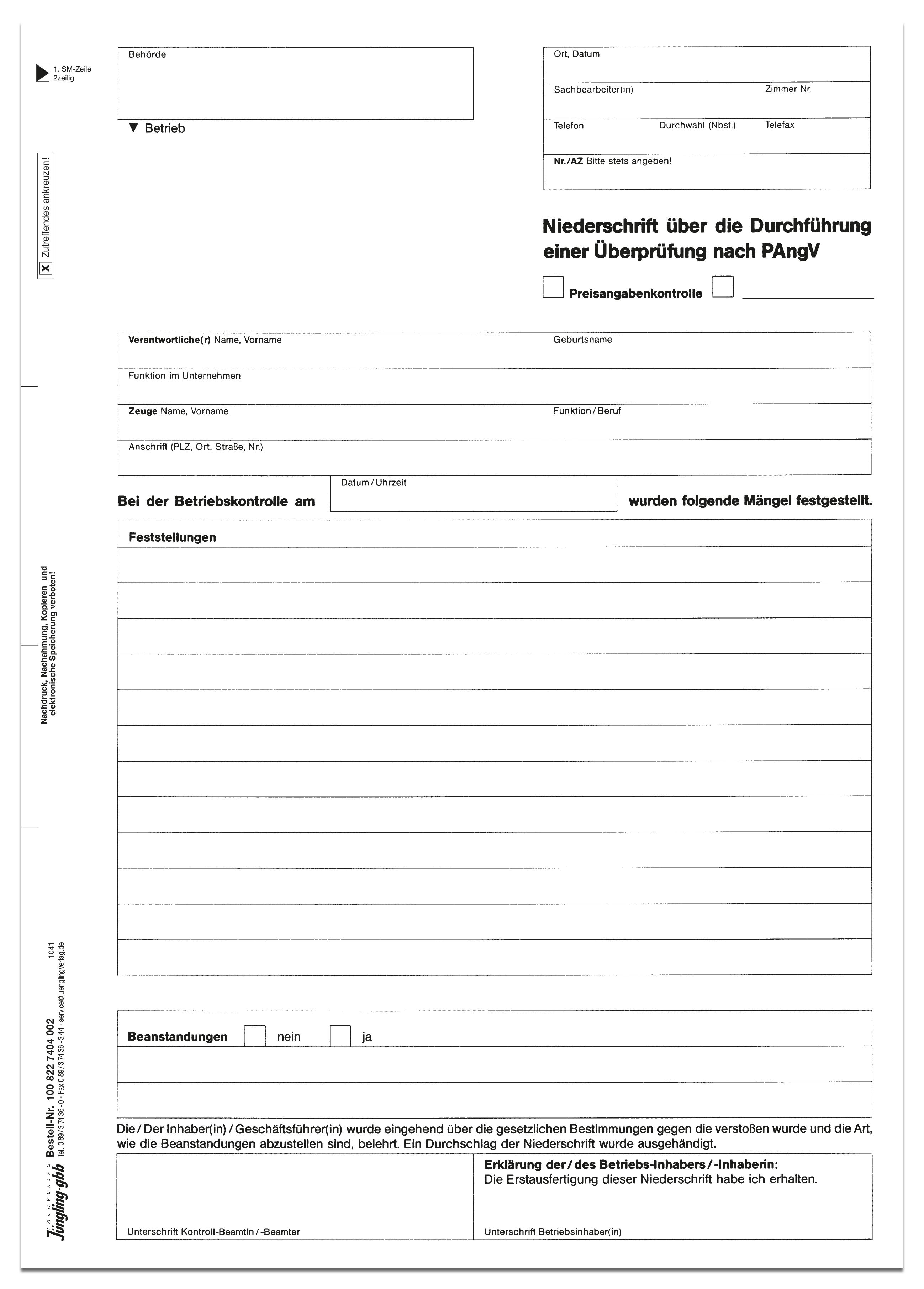 Niederschrift Überprüfung nach Preisangabenverordnung, A4 2-fach