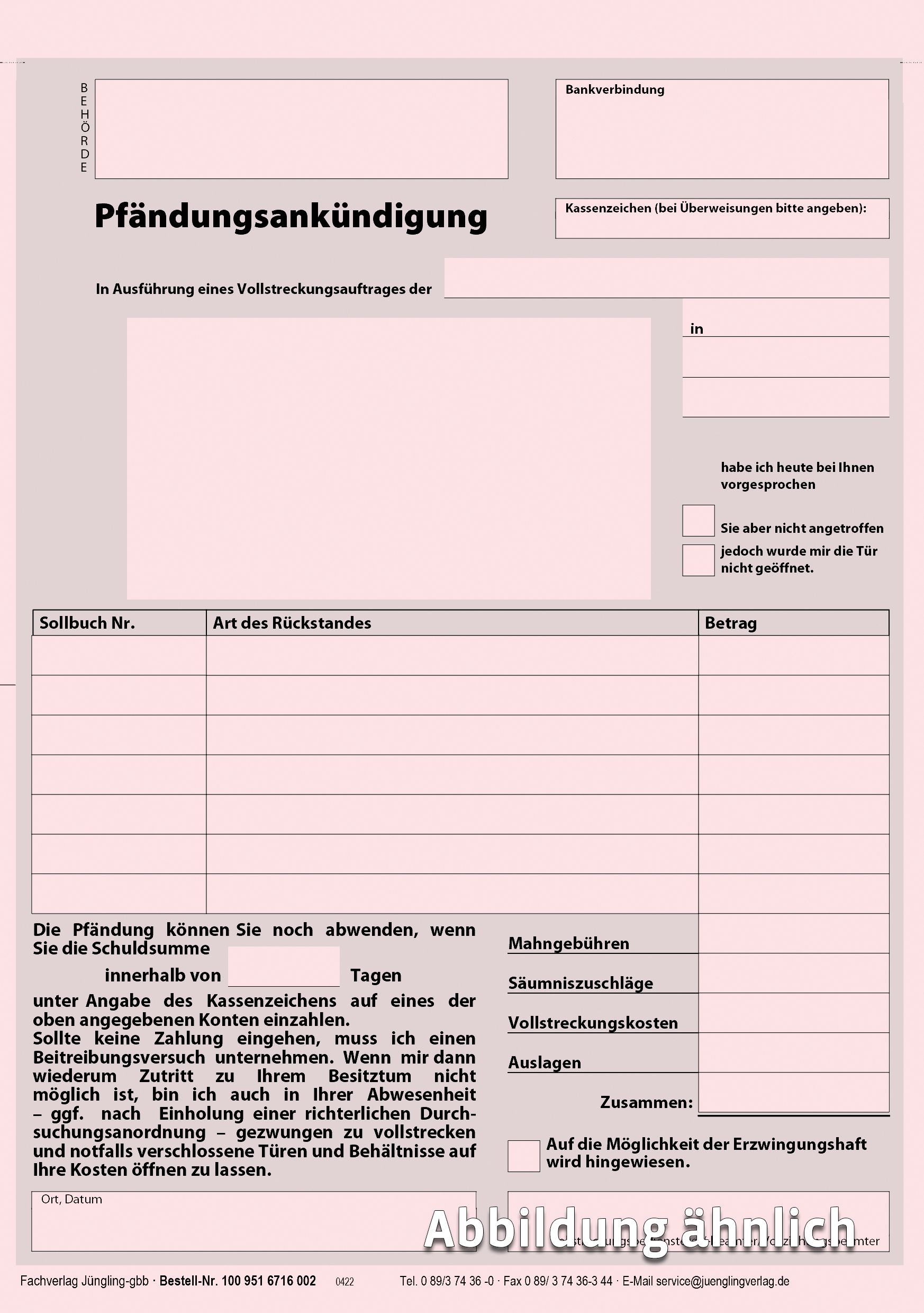 Pfändungsankündigung, Block, A5, 50 Satz, 2-fach