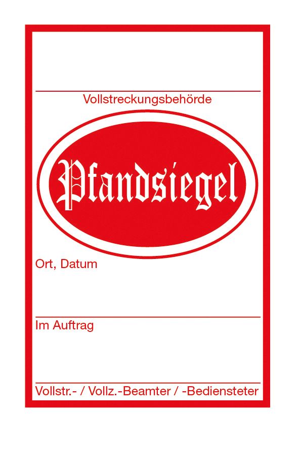 Pfandsiegel Aufkleber 50 mm x 75 mm, Vorderseite geschlitzt