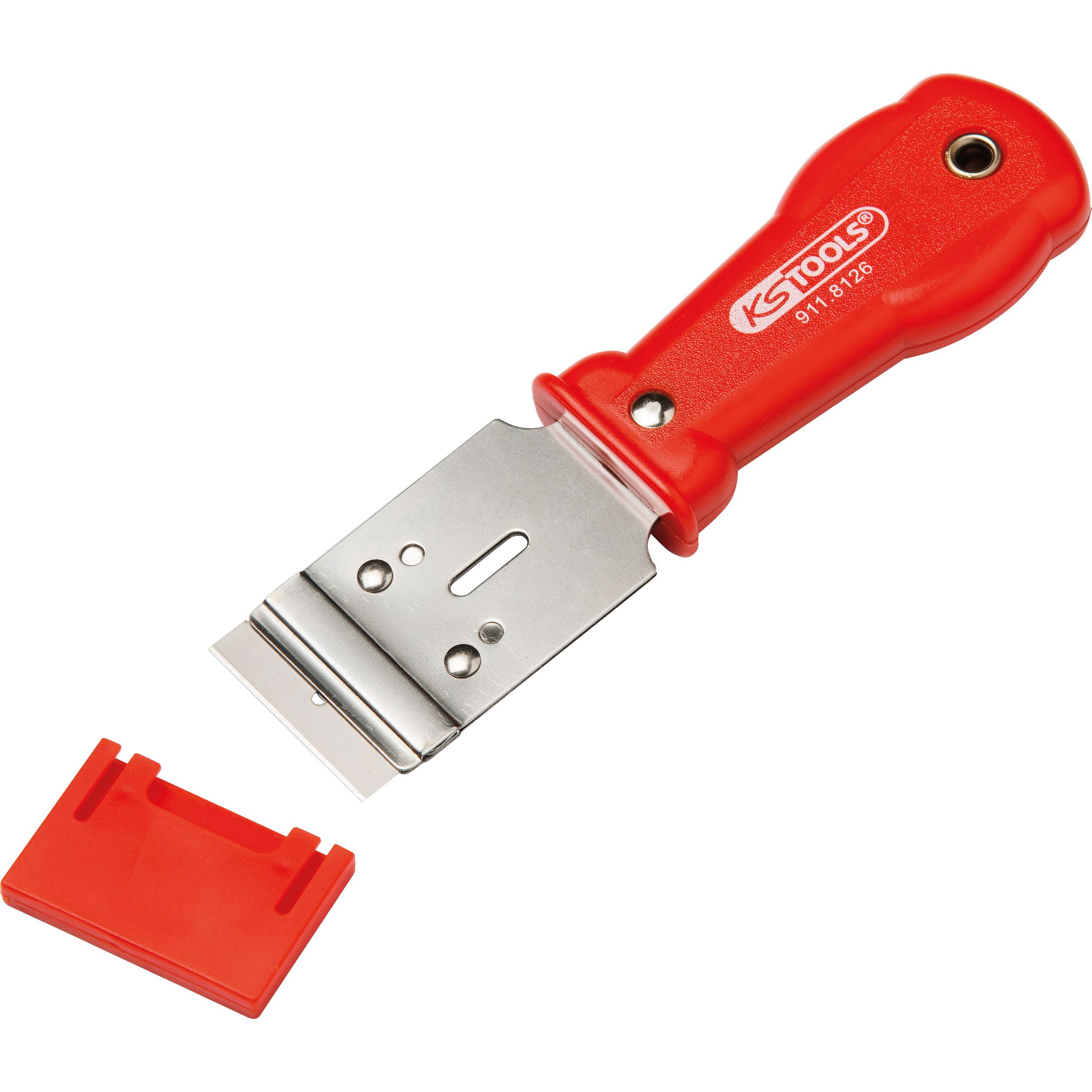 Der Plakettenschaber von KS Tools ist speziell für das Entwerten von Kfz-Kennzeichen ausgelegt. Mit seiner robusten Bauweise und der leicht auswechselbaren Klinge ist dieser Schaber ein unverzichtbares Werkzeug für jeden professionellen Anwender.