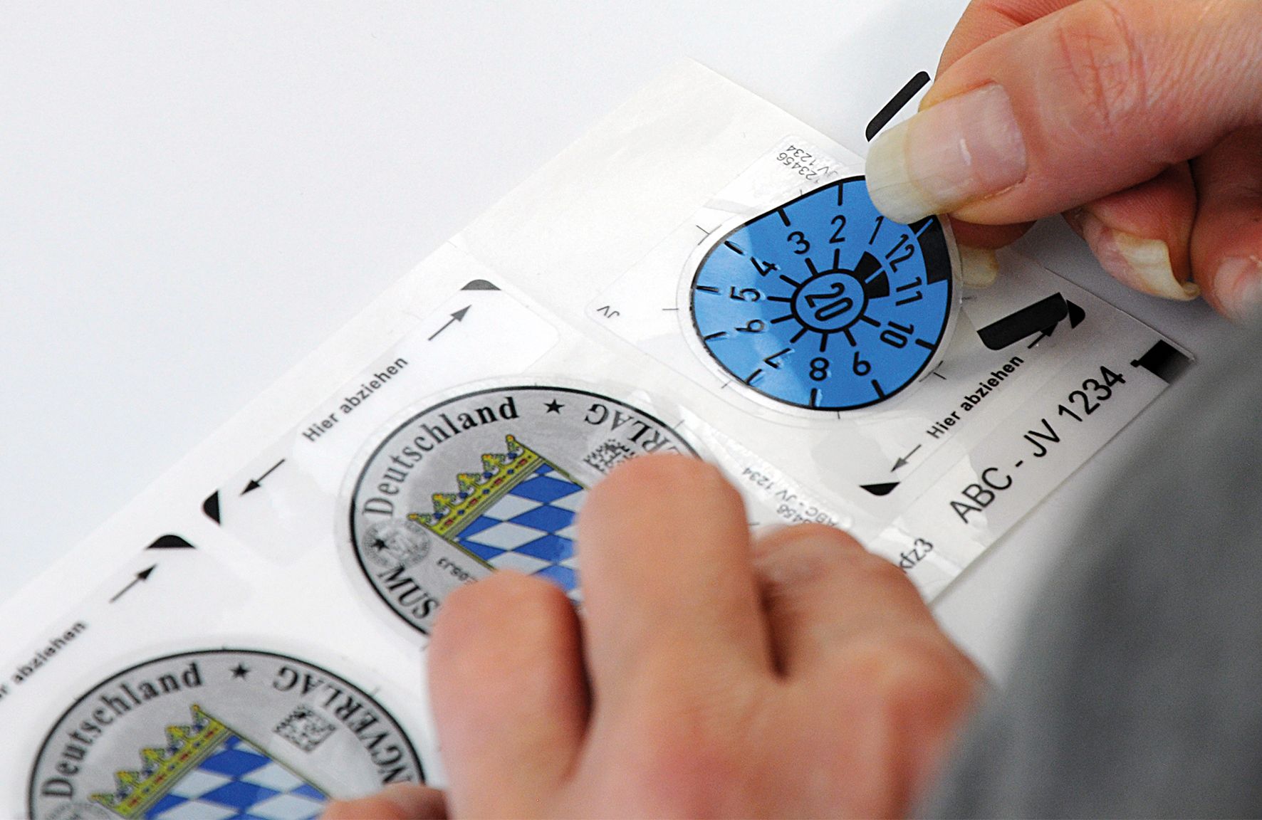 Eine Verpackungseinheit enthält 100 Bogen. Jeder Bogen beinhaltet 3 Aufkleber. Eine Packung beinhaltet somit 300 Aufkleber. Die Plakettenträger sind mit einem Thermotransferdrucker bedruckbar.