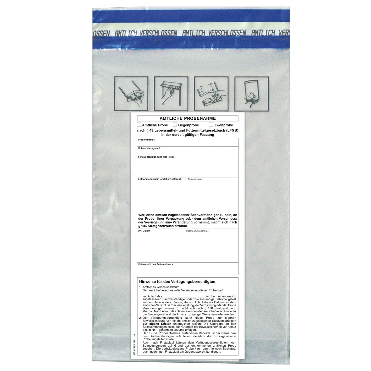 Unsere Probenbeutel mit den Maßen 240 x 400 sind innen steril und manipulationssicher. Gefertigt aus robustem Polyethylen, bieten sie Sicherheit und Zuverlässigkeit für den Probenversand und die Lagerung. Der beigelegte Aufkleber ist bereits mittig auf der unbedruckten Rückseite des Beutels angebracht. Vorteile dieses Produkts sind: