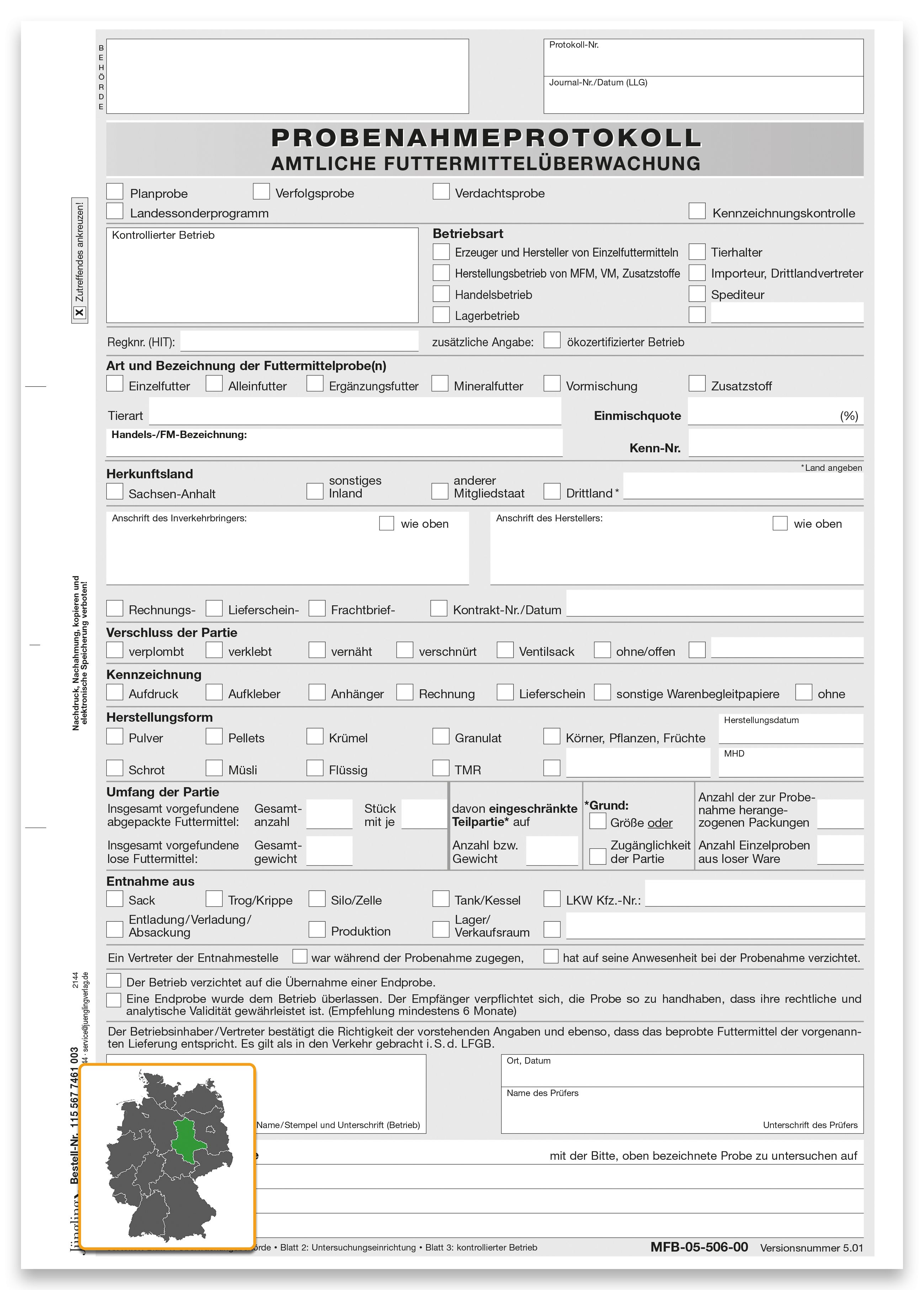 Produktinformationen "Protokoll für amtliche Futtermittelüberwachung, A4, SD-Satz, 3-fach"