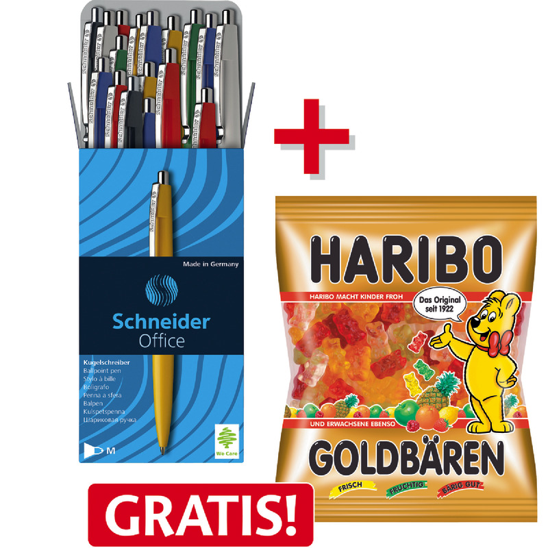 SCHNEIDER Druckkugelschreiber OFFICE/ K15, 50er Box + HARIBO Goldbären GRATIS - farbig sortiert