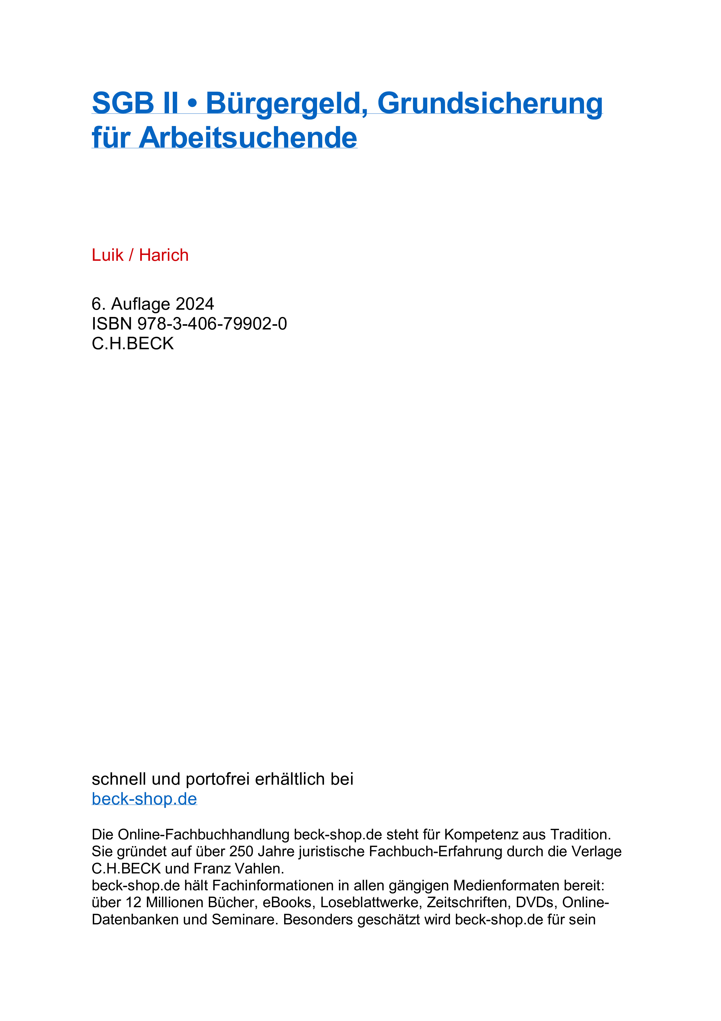 Die Neuauflage berücksichtigt die seit der Vorauflage ergangene Rechtsprechung und die umfangreichen Gesetzesänderungen des SGB II unter anderem durch: