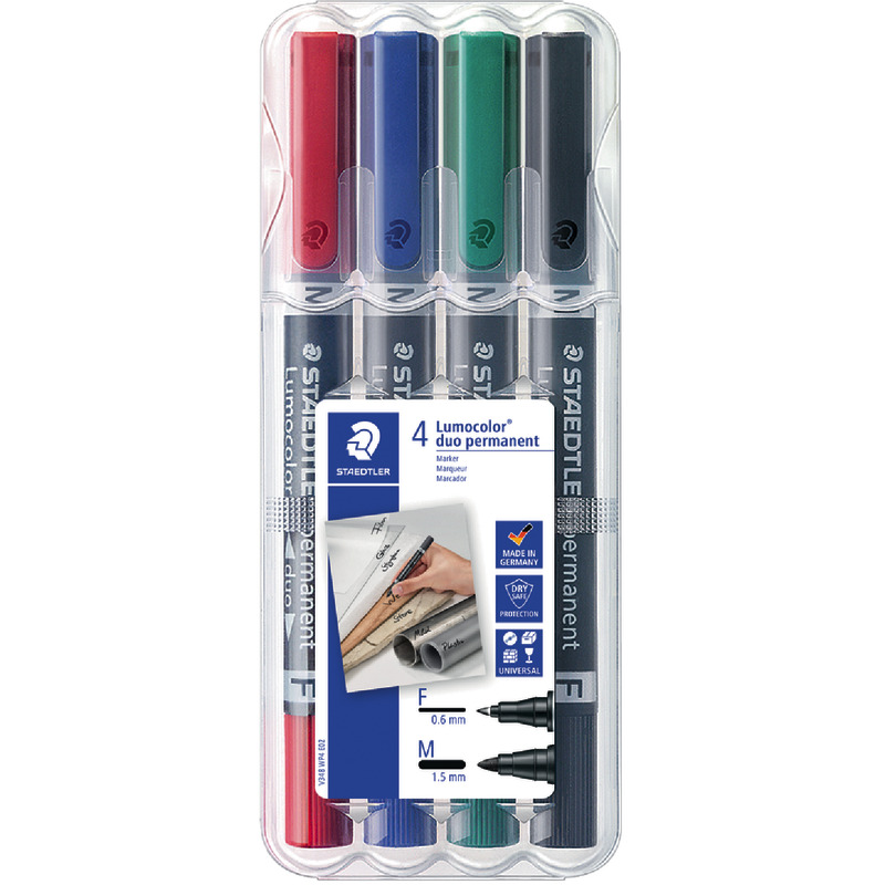 STAEDTLER Permanentmarker Lumocolor® duo 384 F, Etui mit 4 farbsortierten Stiften - farbig sortiert