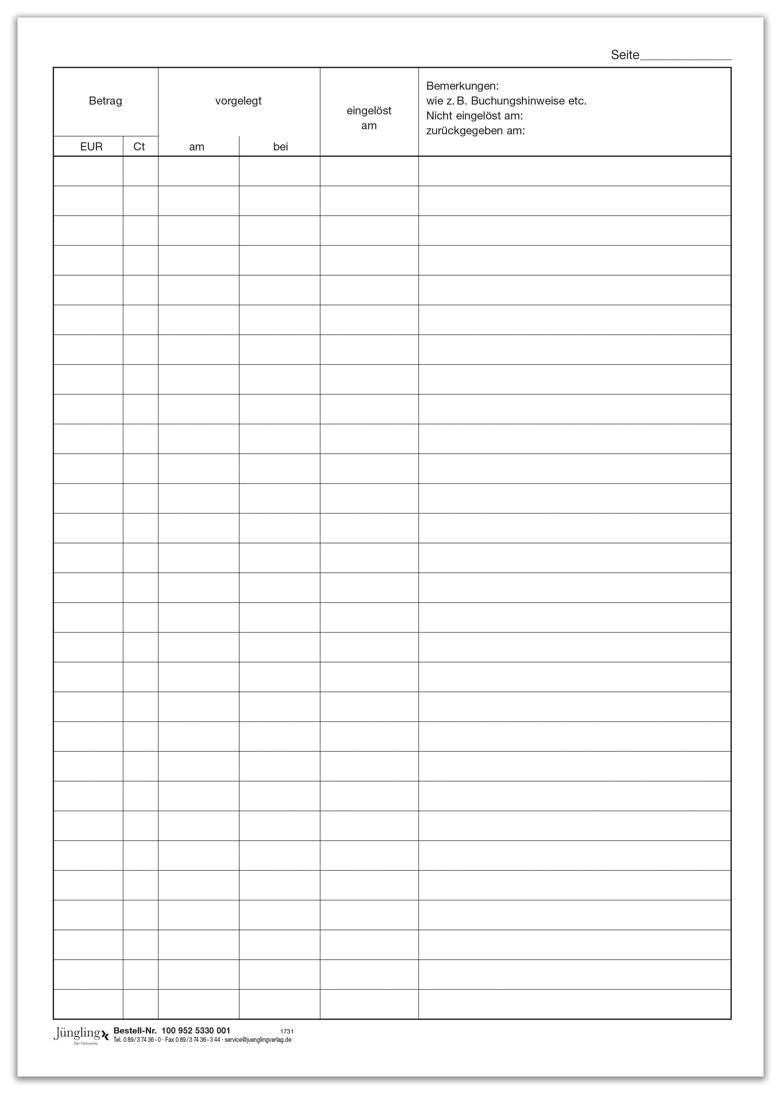 Schecküberwachungsbuch - Einlagebogen, DIN A4 4-seitig