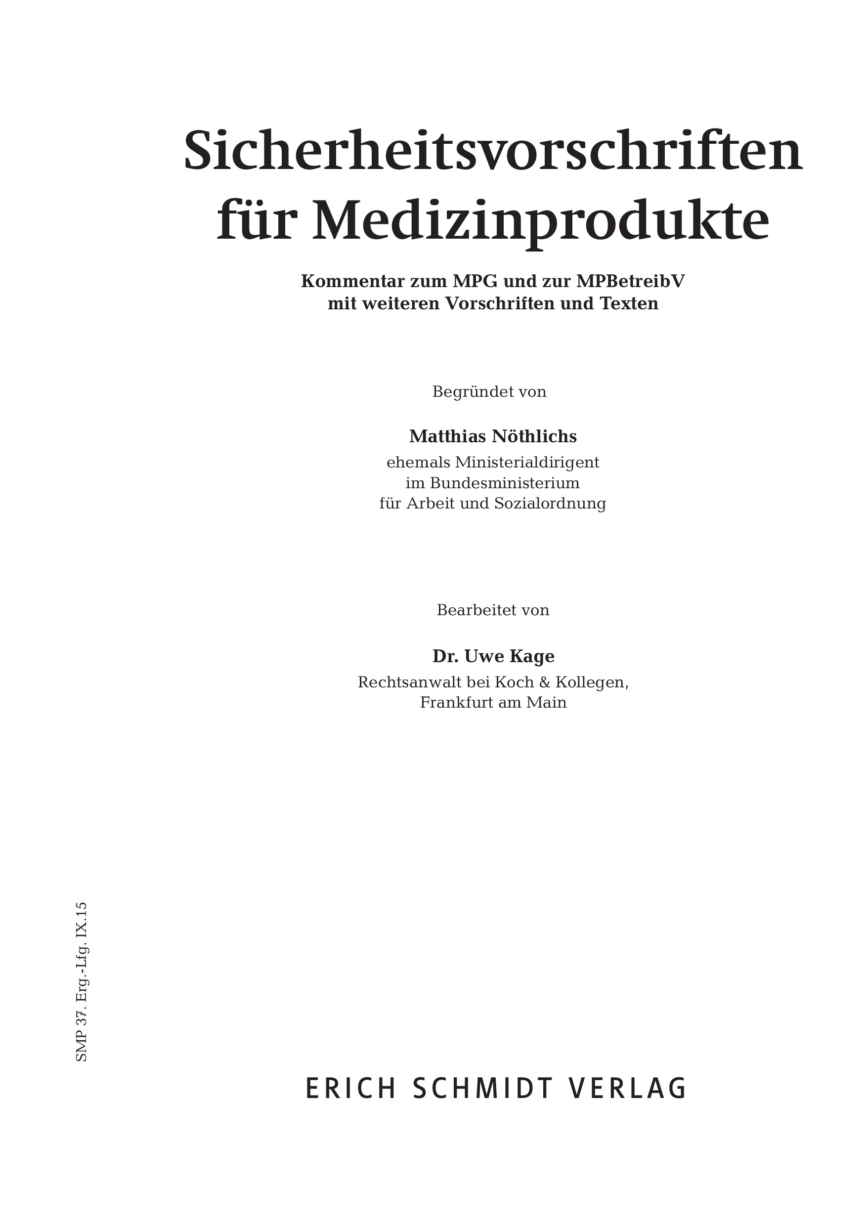 Für alle diejenigen, die für die Sicherheit von Medizinprodukten im Gesundheitswesen Sorge tragen, wird in diesem Praxiskommentar von Schmatz/ Nöthlichs das hierfür grundlegende Gesetzesmaterial eingehend erläutert.