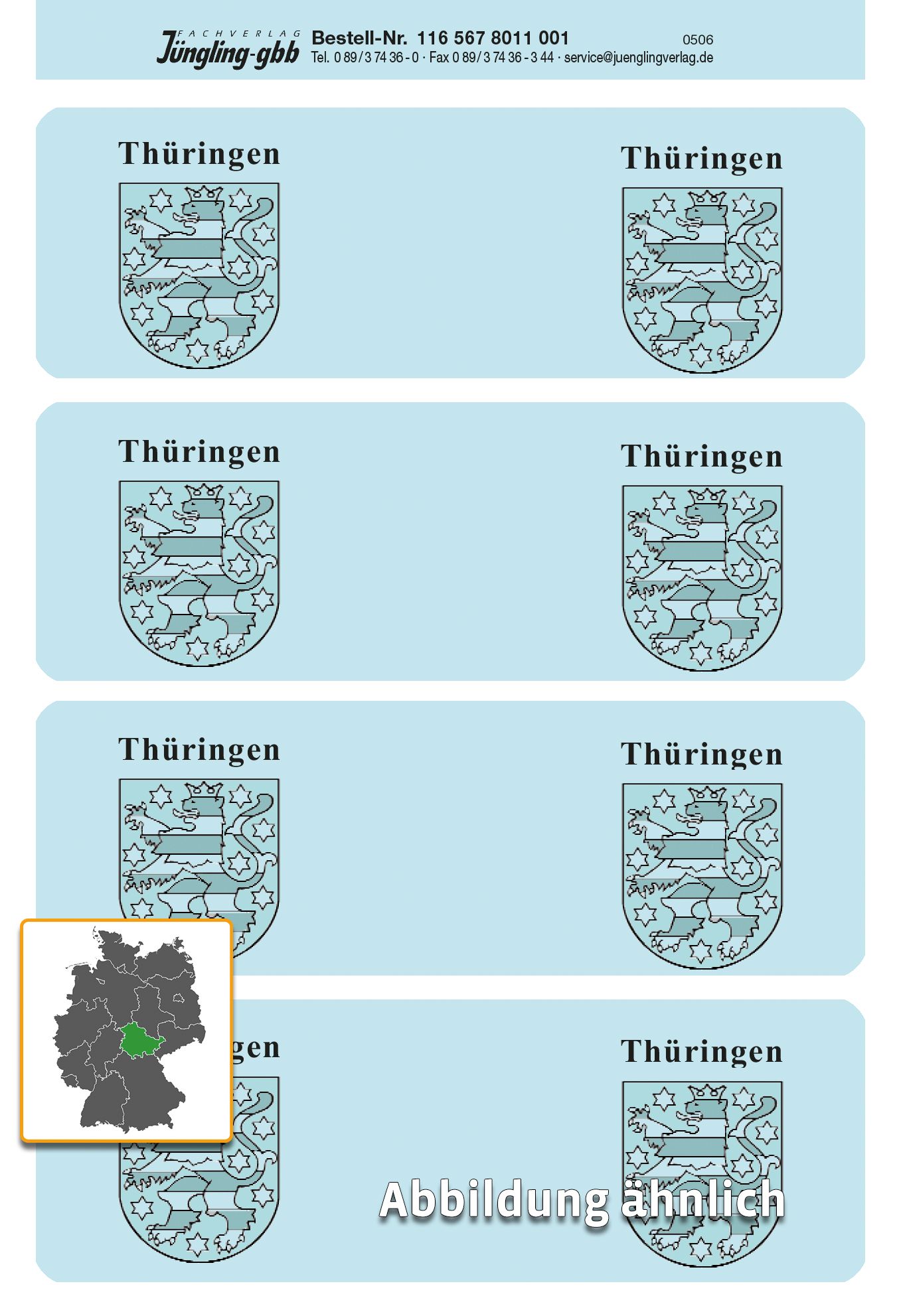 Produktinformationen "Siegelmarken Thüringen, blau Bogen a 4 Stück 105 x 35 mm"