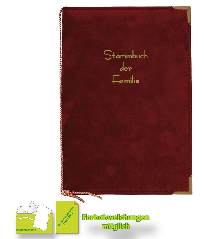 Produktinformationen "Stammbuch Alcan-Velour burgund mit Klemmschiene"