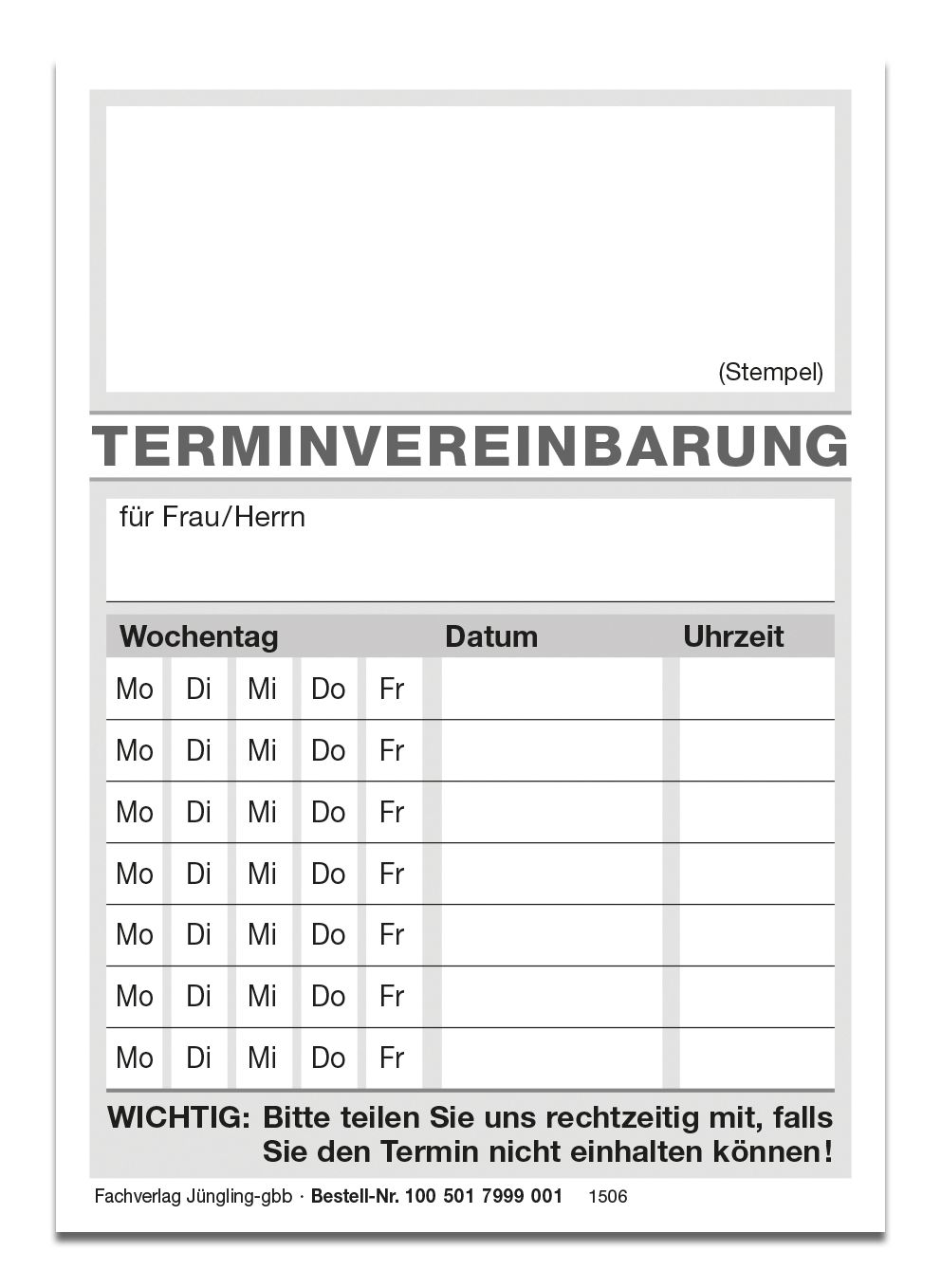 Der Terminblock ist ideal für Behörden, Büros und Unternehmen, die regelmäßig Termine vereinbaren oder Notizen machen müssen. Mit seiner kompakten Größe passt er in jede Tasche und ist daher jederzeit griffbereit. Die hochwertige Papierqualität und stabile Unterlage sorgen für eine angenehme Schreibfläche.