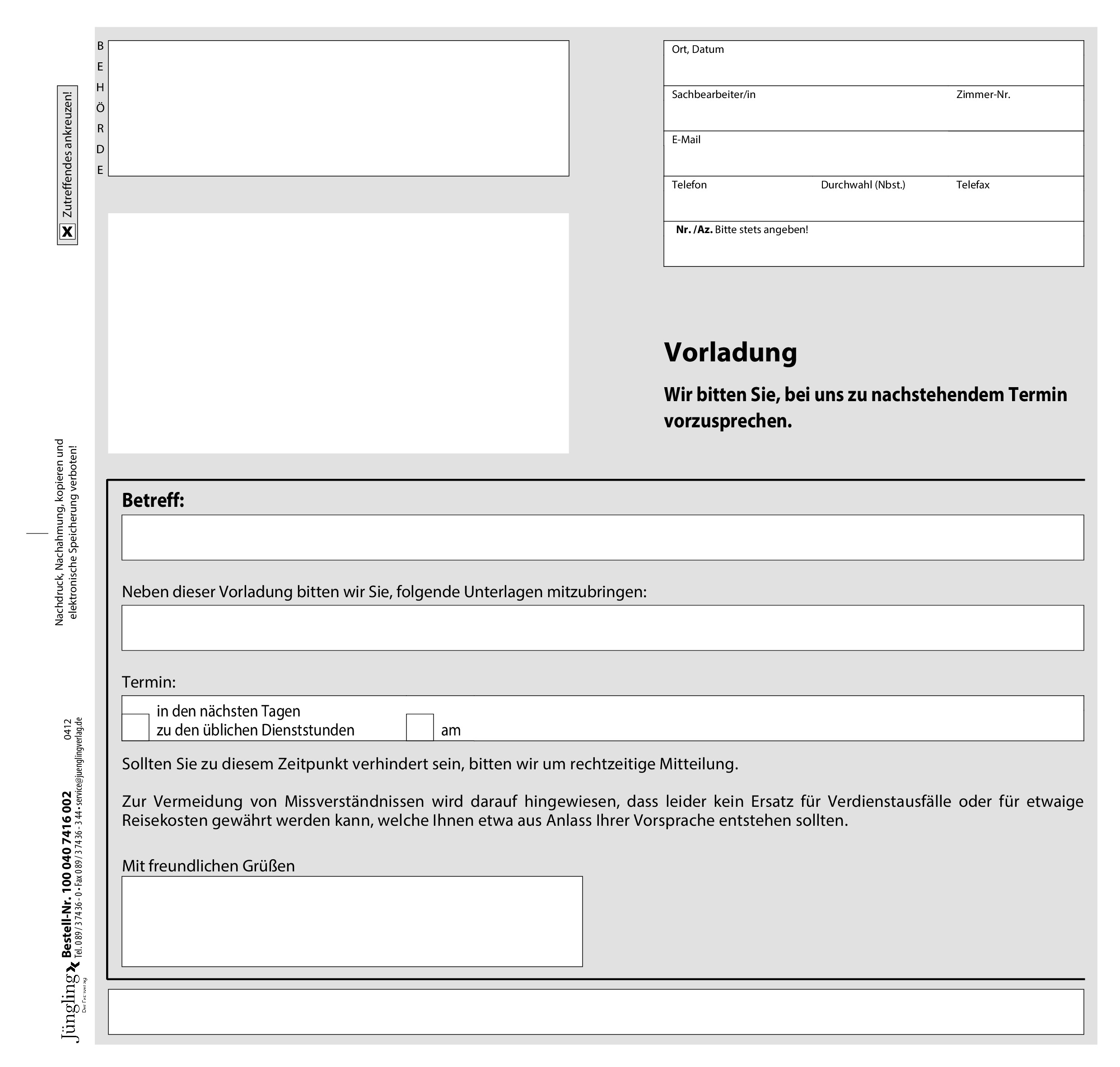 Terminvereinbarung (Vorladung), 2/3 DIN A4, 2-fach SD