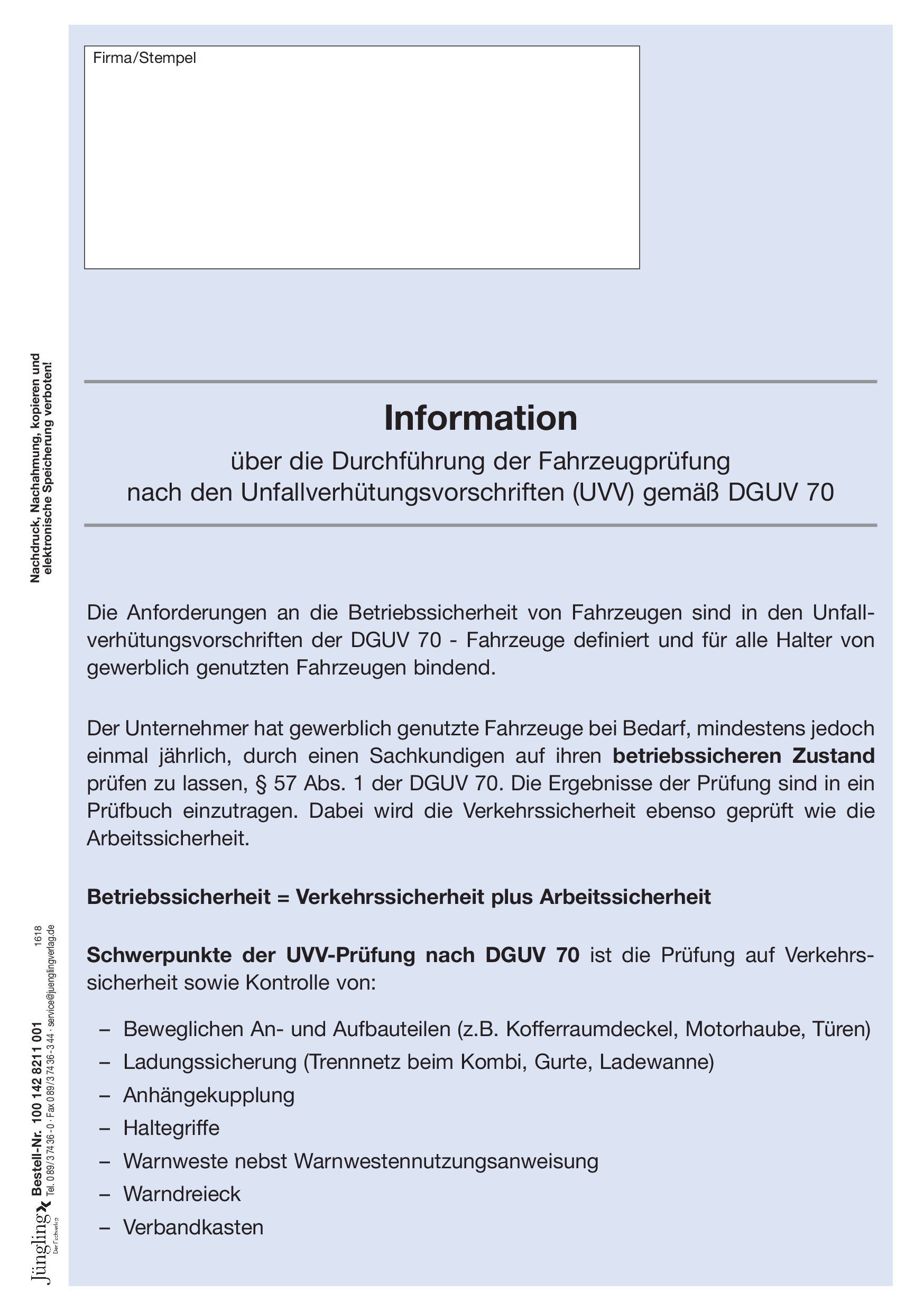 Produktinformationen "UVV-Prüfung Infoblatt DIN A5, 2-seitig"