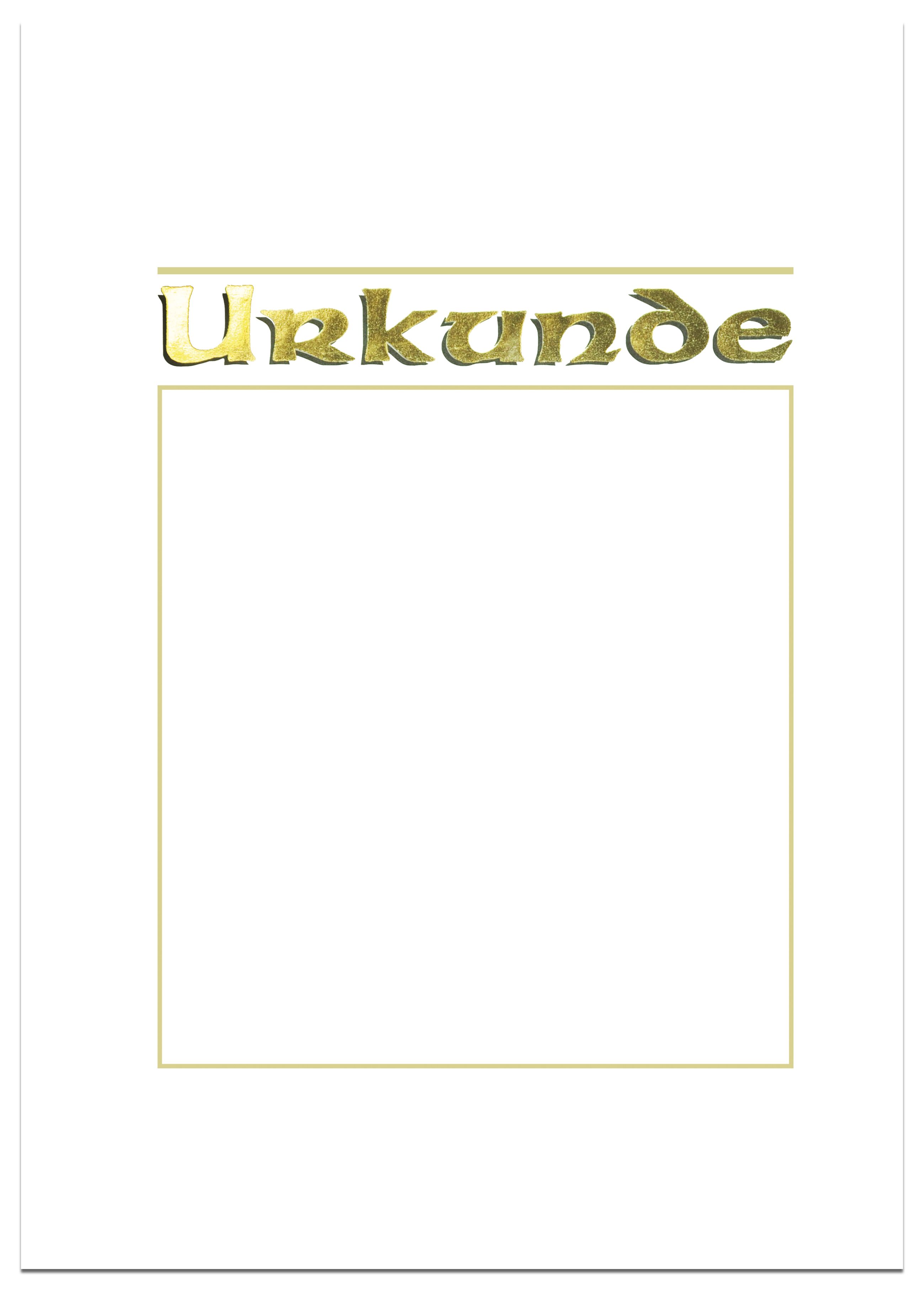 - Elegante Heißfolienprägung des Schriftzugs 'Urkunde' in Gold