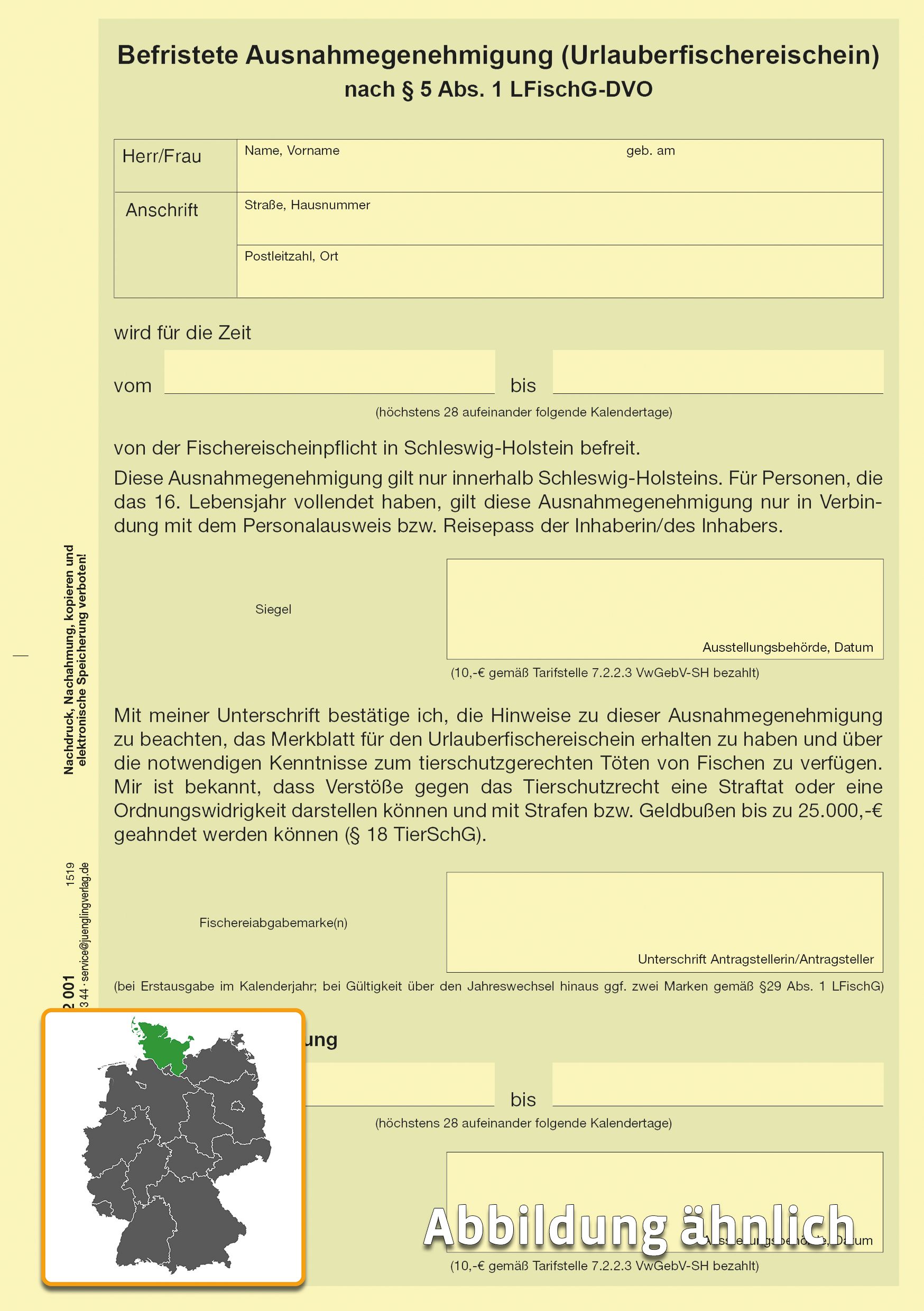 Produktinformationen "Urlauberfischereischein Ausnahmegenehmigung § 5 LFischG-DVO, A5 Karton gelb"