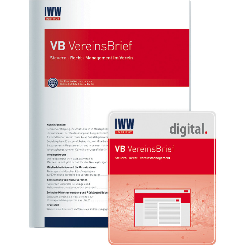 - Vereinsvorstände müssen immer auch das Gemeinnützigkeitsrecht im Auge haben. VB verschafft Ihnen Sicherheit durch schnell umsetzbare Empfehlungen zu den zentralen rechtlichen Fragestellungen im Verein (Vergütung, Mitgliederrechte, Haftung etc.).