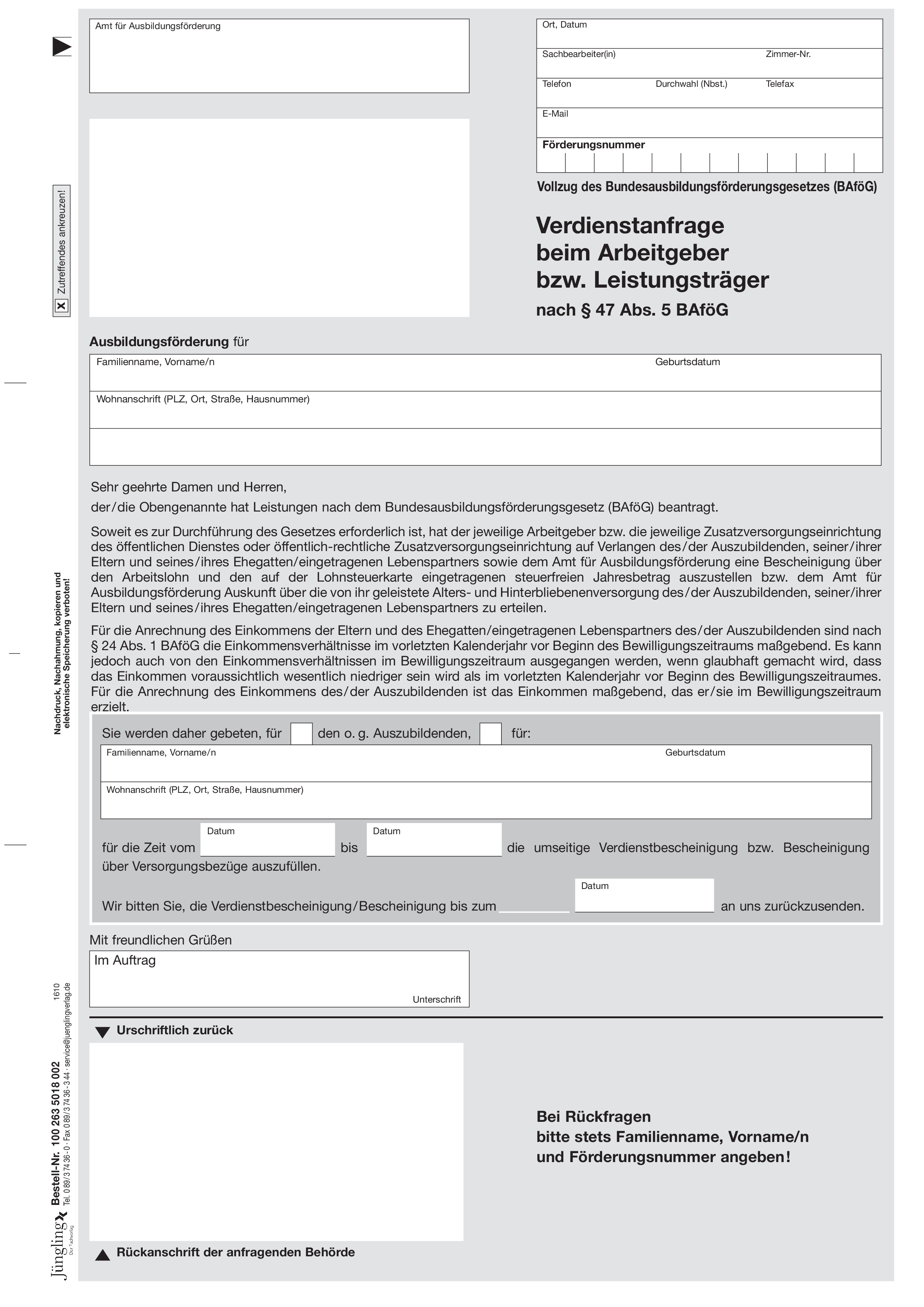 Produktinformationen "Verdienstanfrage beim Arbeitgeber nach § 47 (5) BAföG"
