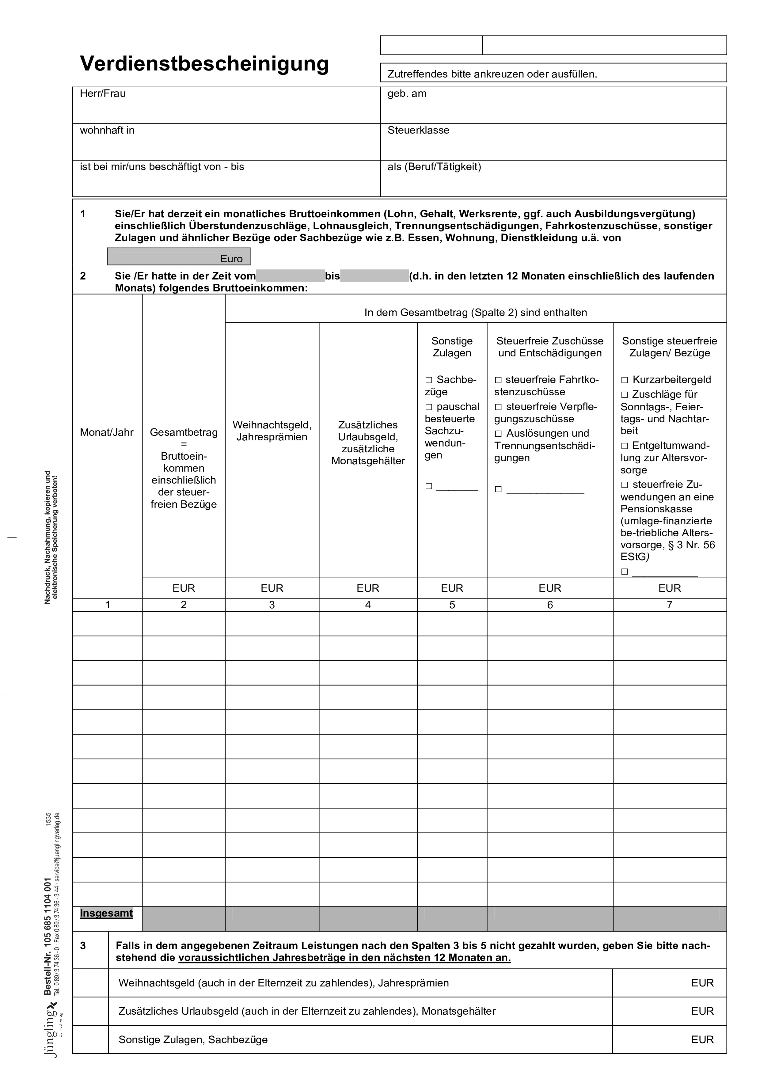 Verdienstbescheinigung A4