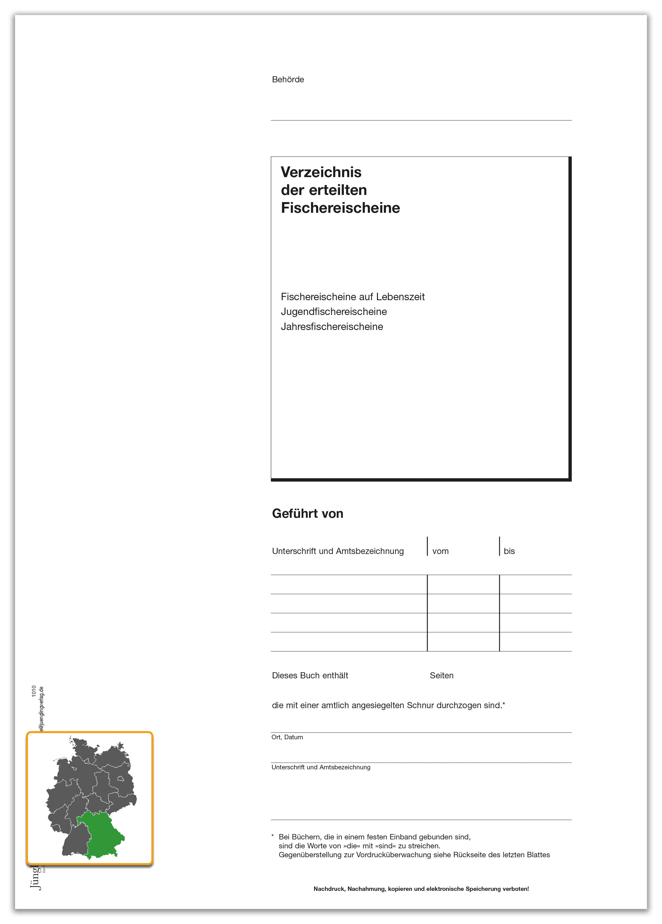 Produktinformationen "Verzeichnis Fischereischeine - Titelbogen, A4"