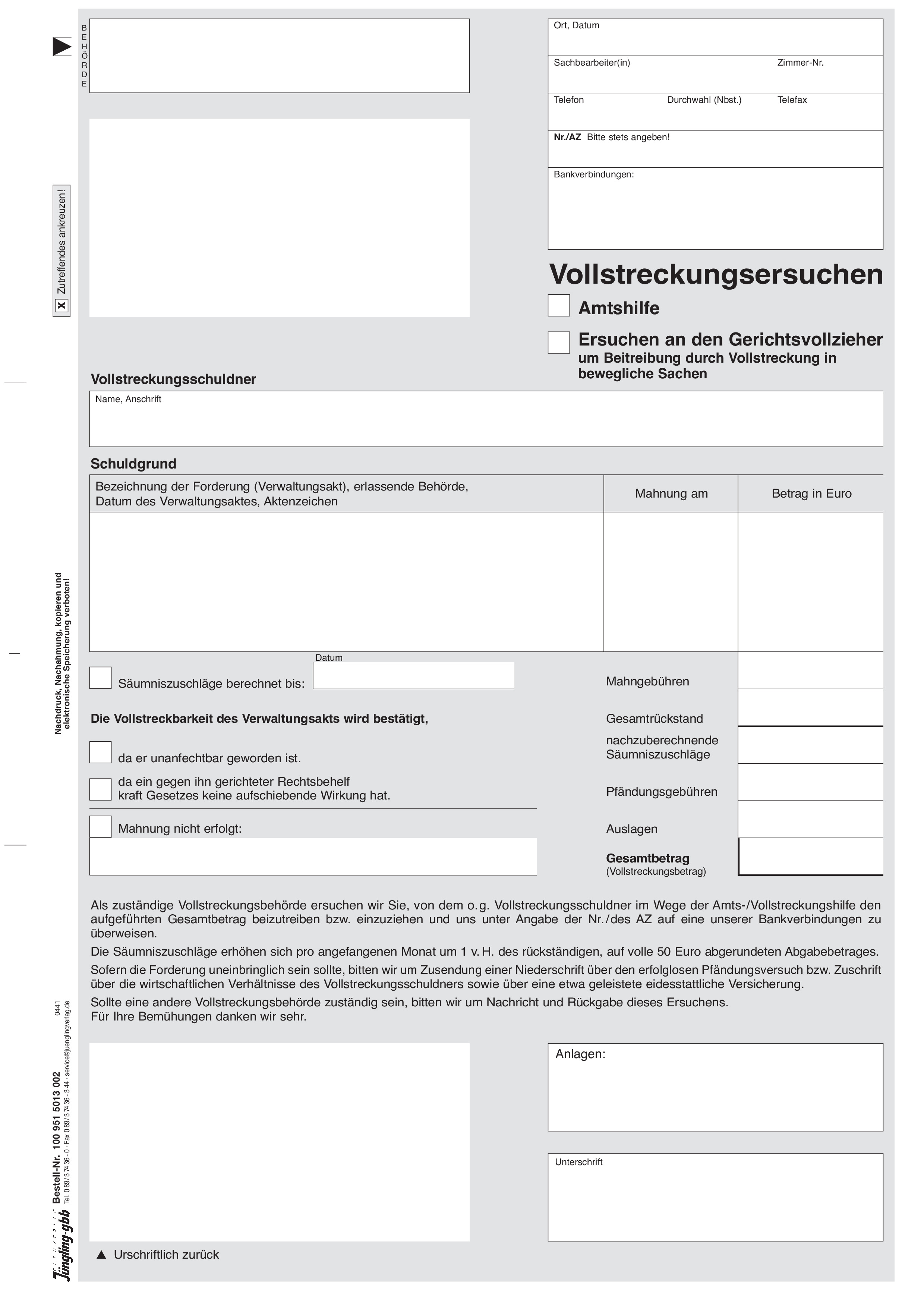 Produktinformationen "Vollstreckungsersuchen, Amtshilfe / an Gerichtsvollzieher, A4, 2-fach"