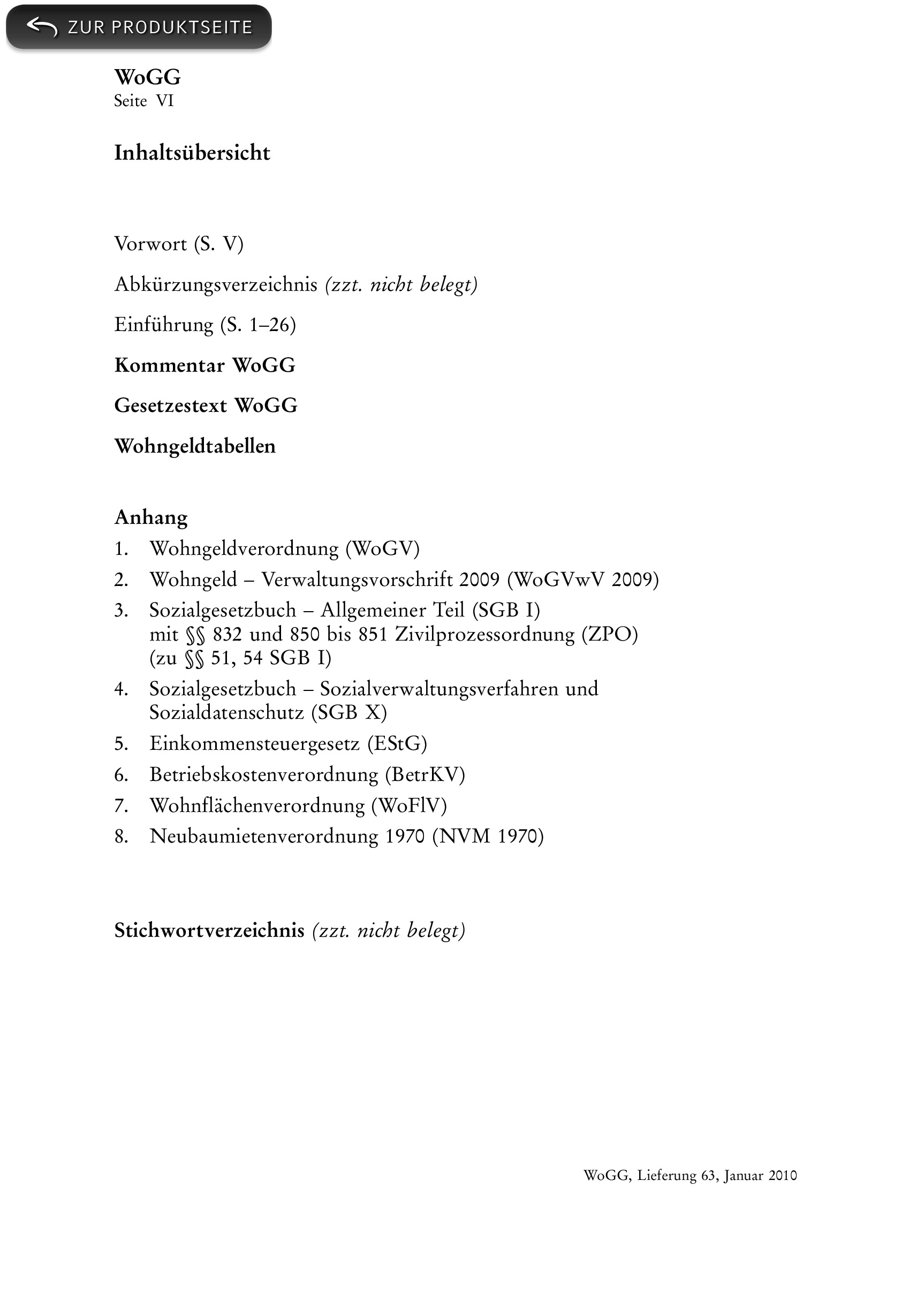 Produktinformationen "Wohngeldgesetz - mit Fortsetzungsbezug"