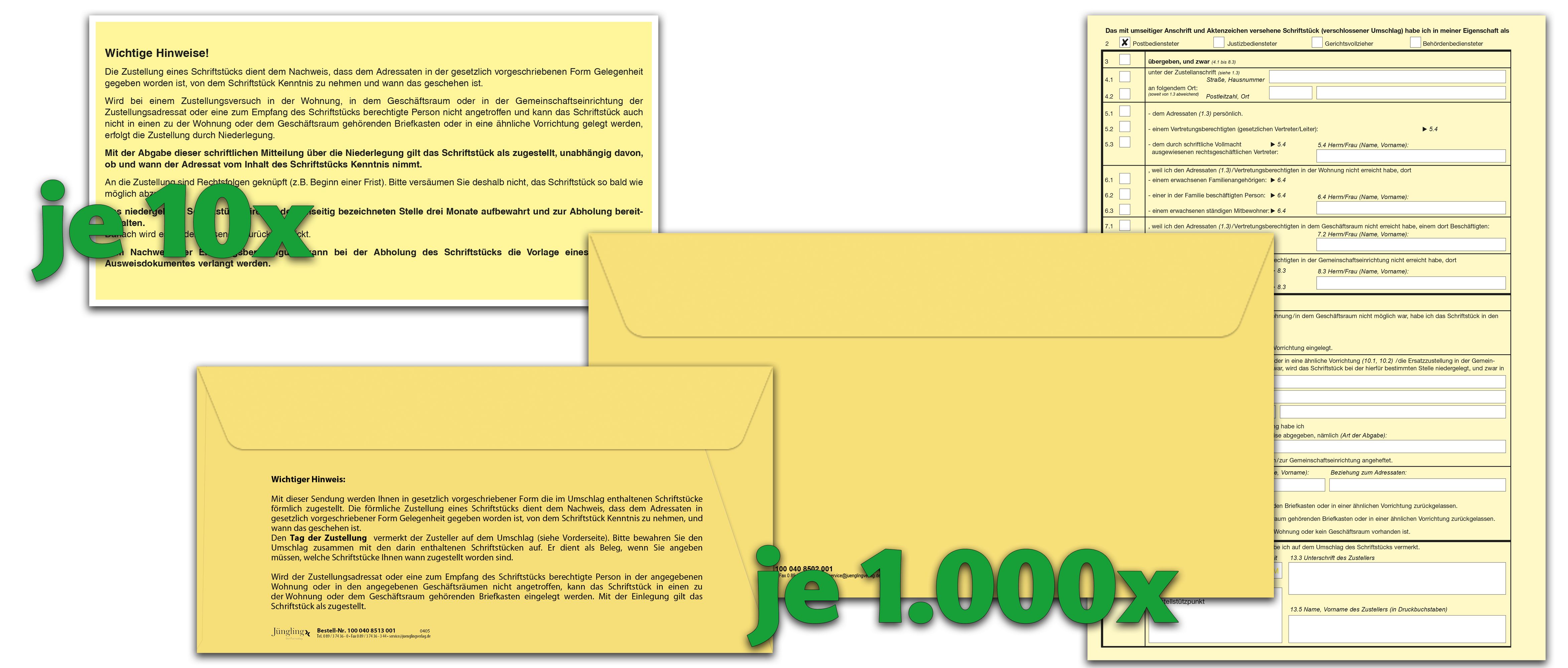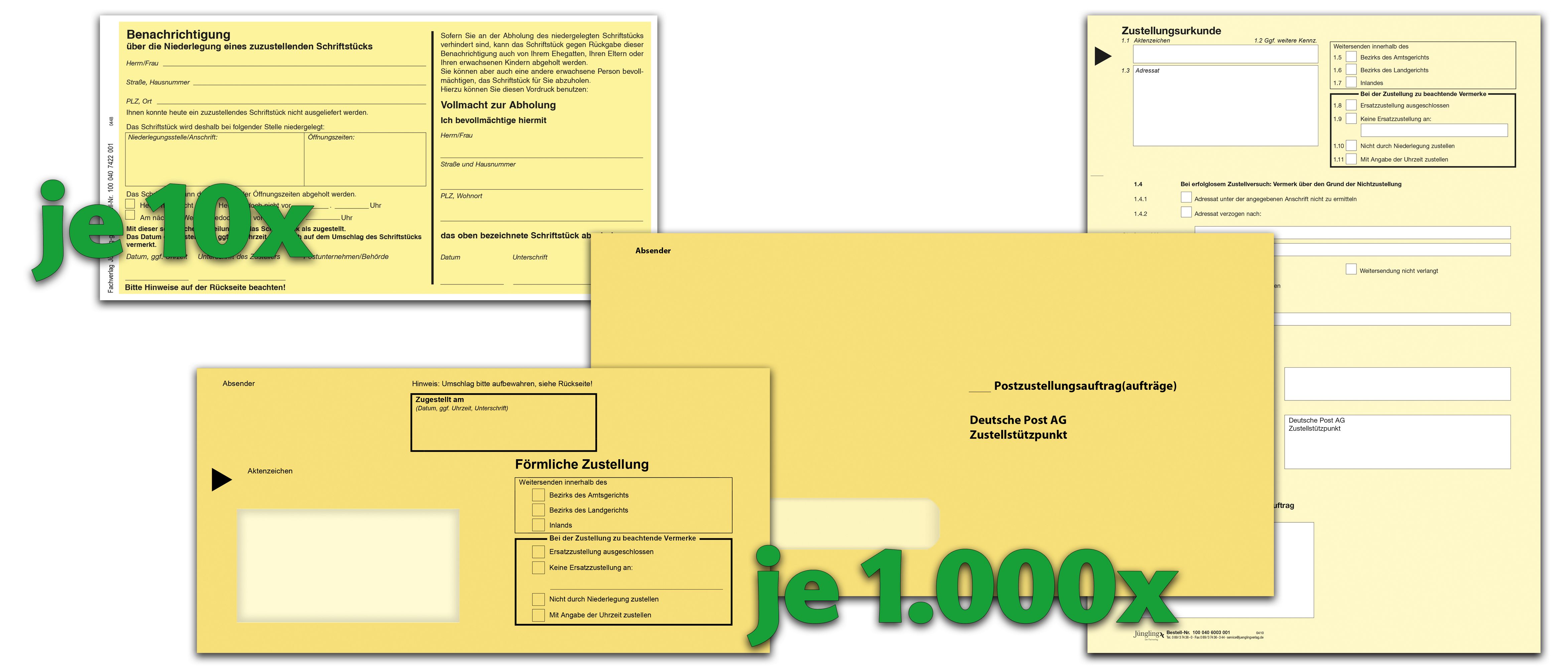 Das ZU-Paket 1000 enthält folgende Bestandteile zur förmlichen Zustellung: