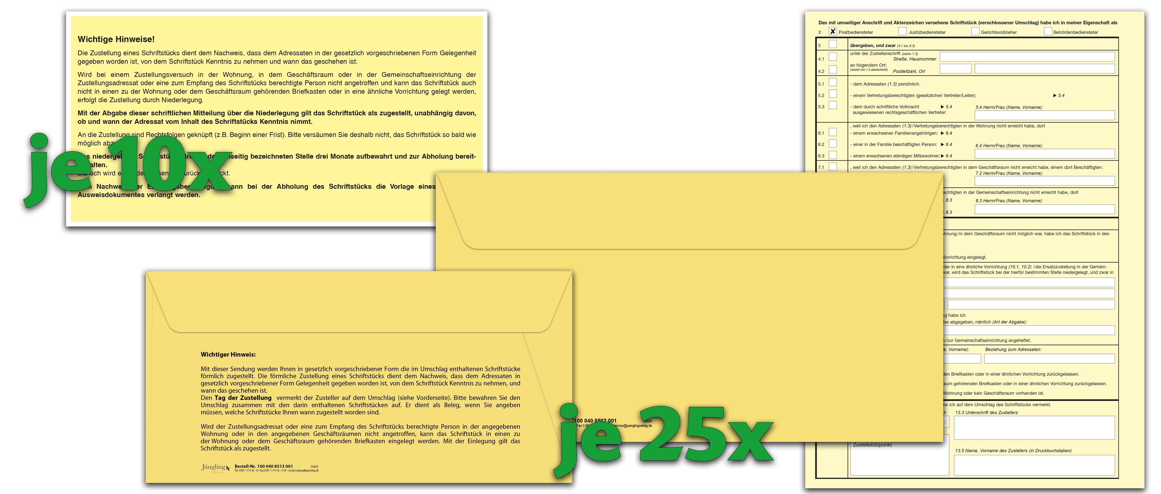 Das ZU-Paket 25 mit Eindruck Deutsche Post AG ist speziell für Behörden und Unternehmen konzipiert, die regelmäßig Post versenden. Enthalten sind verschiedene wichtige Benachrichtigungs- und Zustellformulare, die den administrativen Aufwand reduzieren und die Effizienz erhöhen.